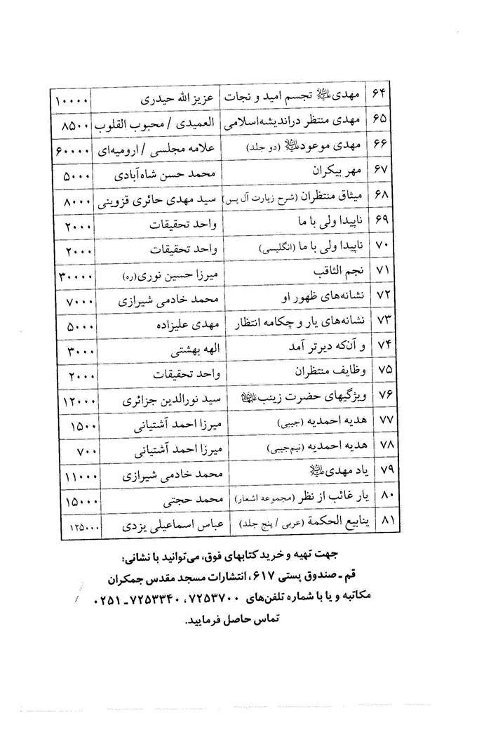 مشخصات نشر:قم: مسجد مقدس صاحب الزمان (جمکران)، 1382.