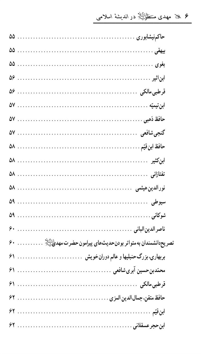 [اهل سنّت نیز به این عقیده ایمان آورده اند.(2)] و سپس گفته ابن خلدون را عیناً نقل می کند(3) و می افزاید: [ابن حجر نزدیک به پنجاه حدیث درباره حضرت مهدی علیه السلام گرد آورده است.(4)] آن گاه پژوهشهای خود را از کتابهای اهل سنّت درباره حضرت مهدی علیه السلام، چنین بیان می کند: