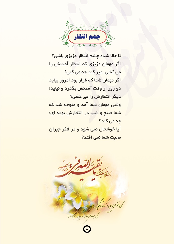 عنوان و نام پدیدآور:خانه خانه تا ظهور/گروه یاوران مهدی علیه السلام ؛ بروجن؛به کوشش حسن محمودی