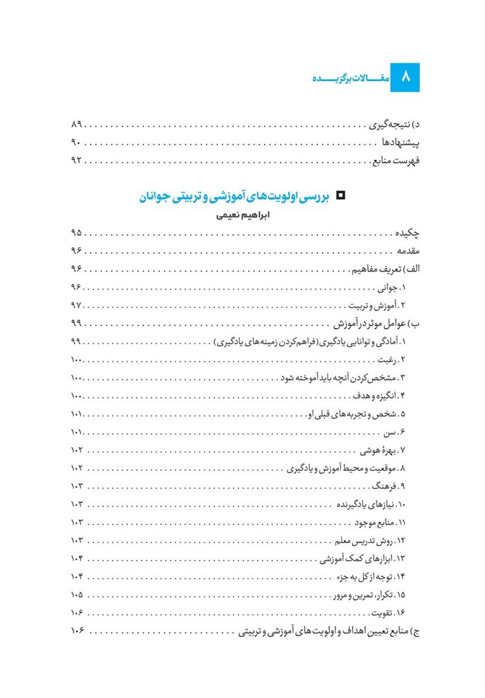7. ربانی، محسن، آسیب شناسی تربیت دینی: برای مدیریت مطالعات و تحقیقات حوزه نمایندگی ولی فقیه در جهاد کشاورزی، ناجی نشر، تهران، 1389.
