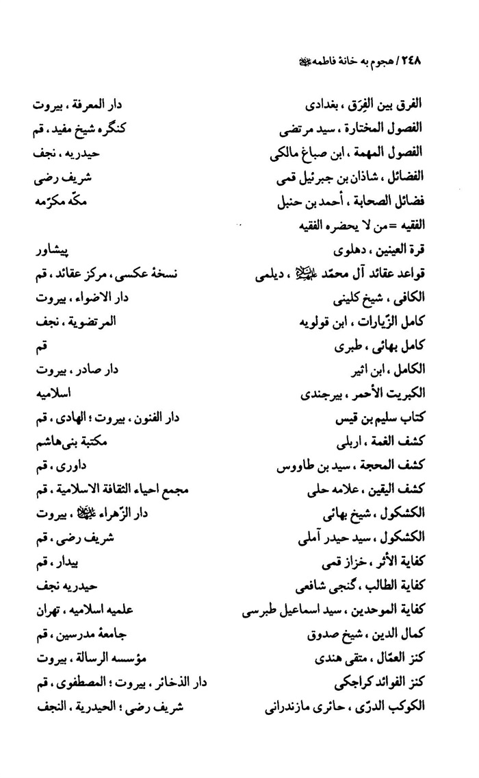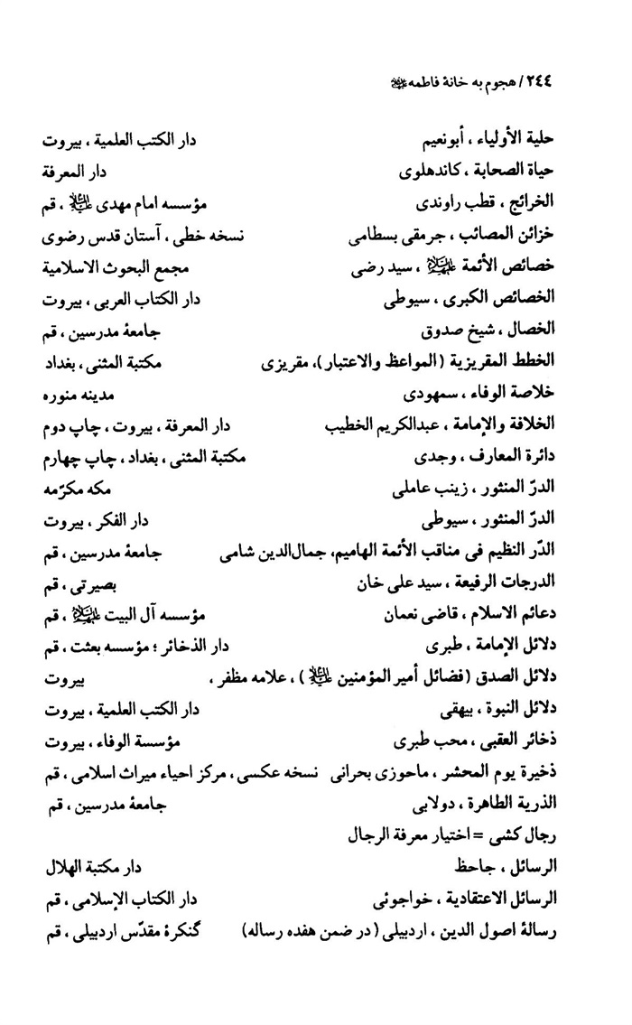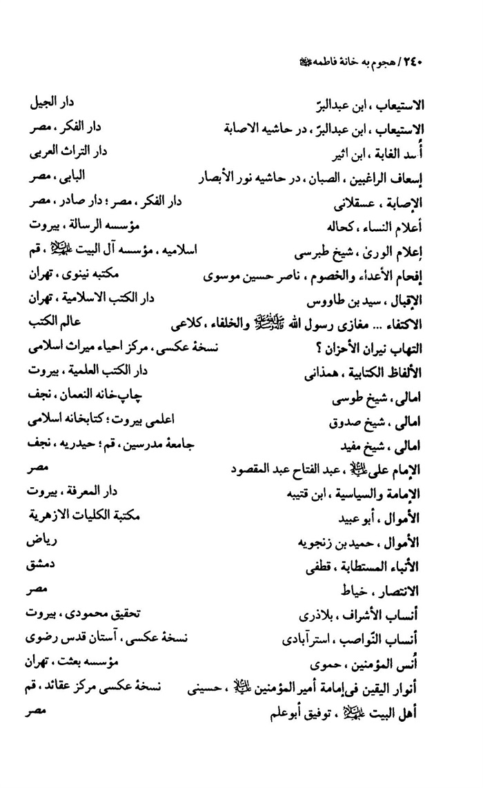 عنوان قراردادی:الهجوم علی بیت فاطمه علیه السلام. فارسی.