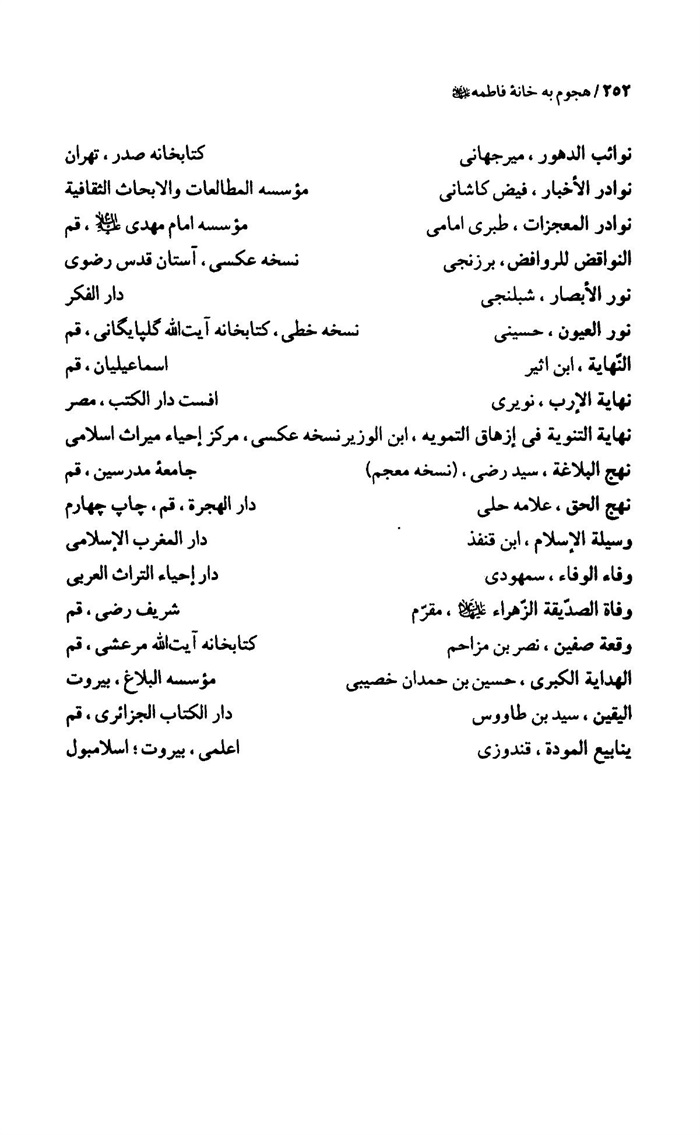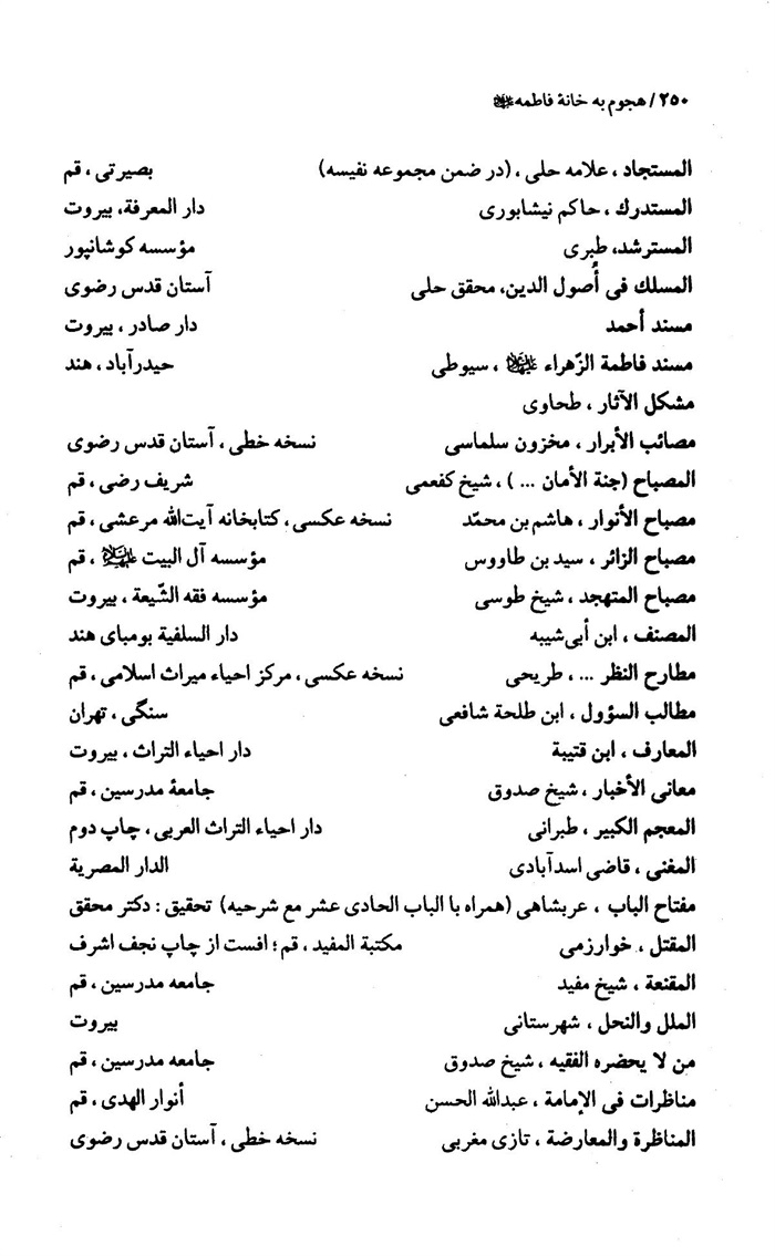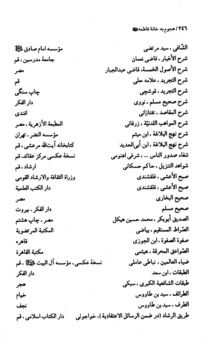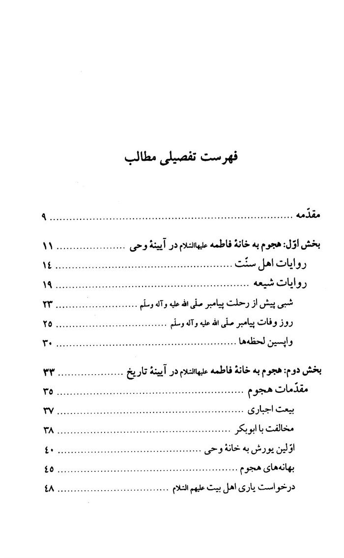 يادداشت:عنوان روی جلد: نگرشی در اسناد و مدارک هجوم به خانه صدیقه طاهره علیهاالسلام از قرن اول هجری تا کنون(ترجمان از کتاب الهجوم علی بیت فاطمه علیهاالسلام).