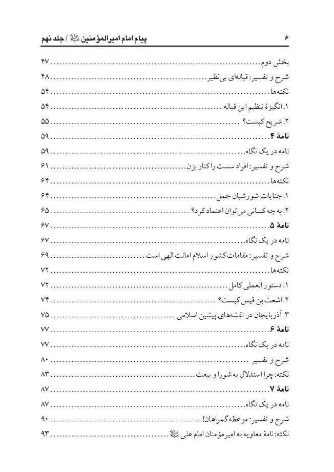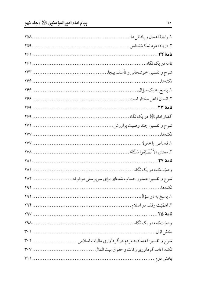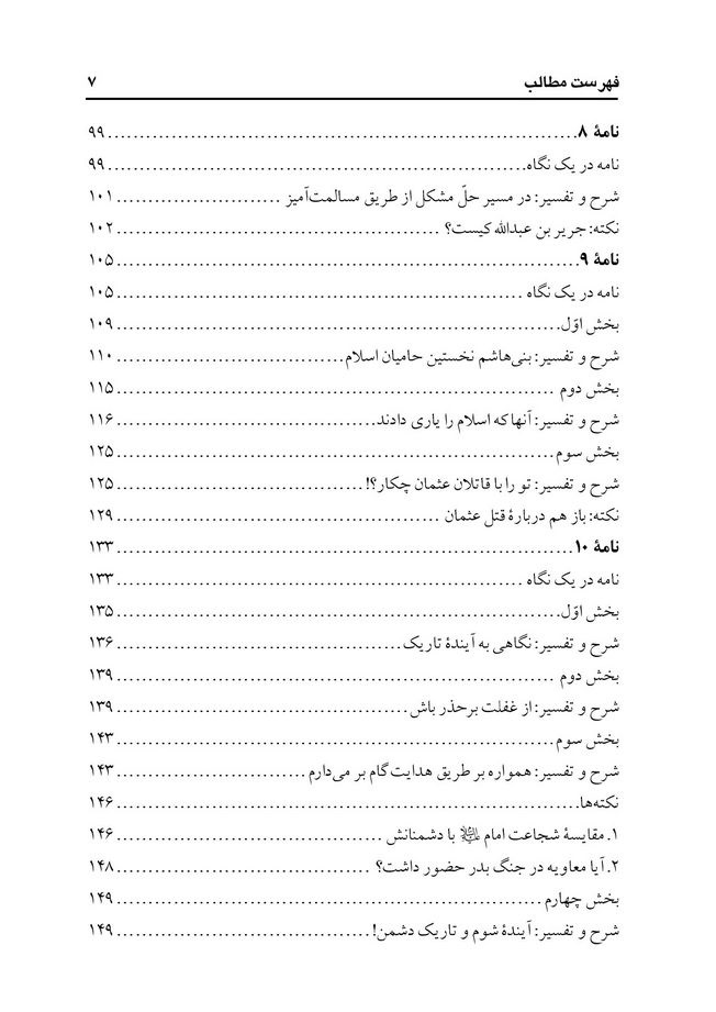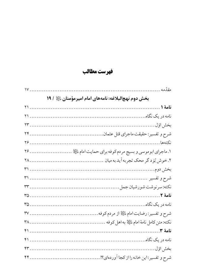مندرجات:ج 8. خطبه 201 -241.- ج. 10 . نامه های تاریخی امام علی ( ع ) 32 - 53.-ج.11. نامه های تاریخی امام علی (ع) 54-79.- ج.12. گفتار حکیمانه 1 - 120