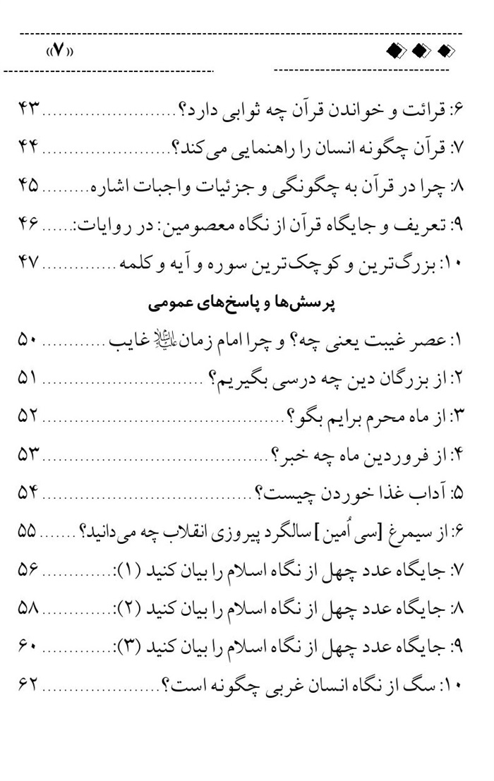 2 - این کتاب ها گرچه برای مطالعه و مسابقه جوانان و نوجوانان تدوین شده است ولی برای همگان مفید است؛ چون مسائل و وظایف دینی برای همه مکلفین یکسان است.