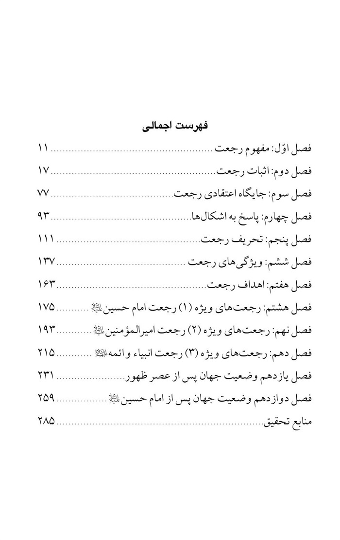رجعت، برخلاف جایگاه مهم خود و اشتیاق فراوانی که به مطالعه آن در میان اهل ایمان وجود دارد، کمتر مورد بررسی محققانه قرار گرفته است و تاکنون از فصل بندی مناسب و ارتباط و انسجام لازم در مطالب مربوط به آن برخوردار نبوده است.