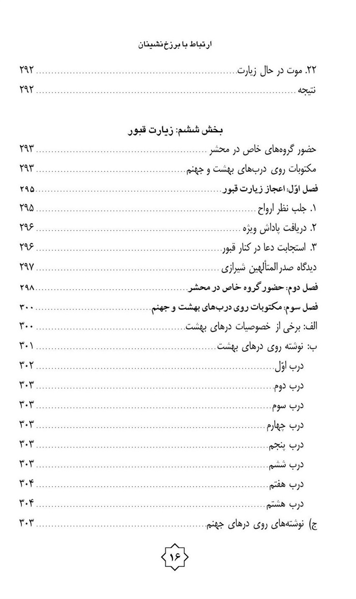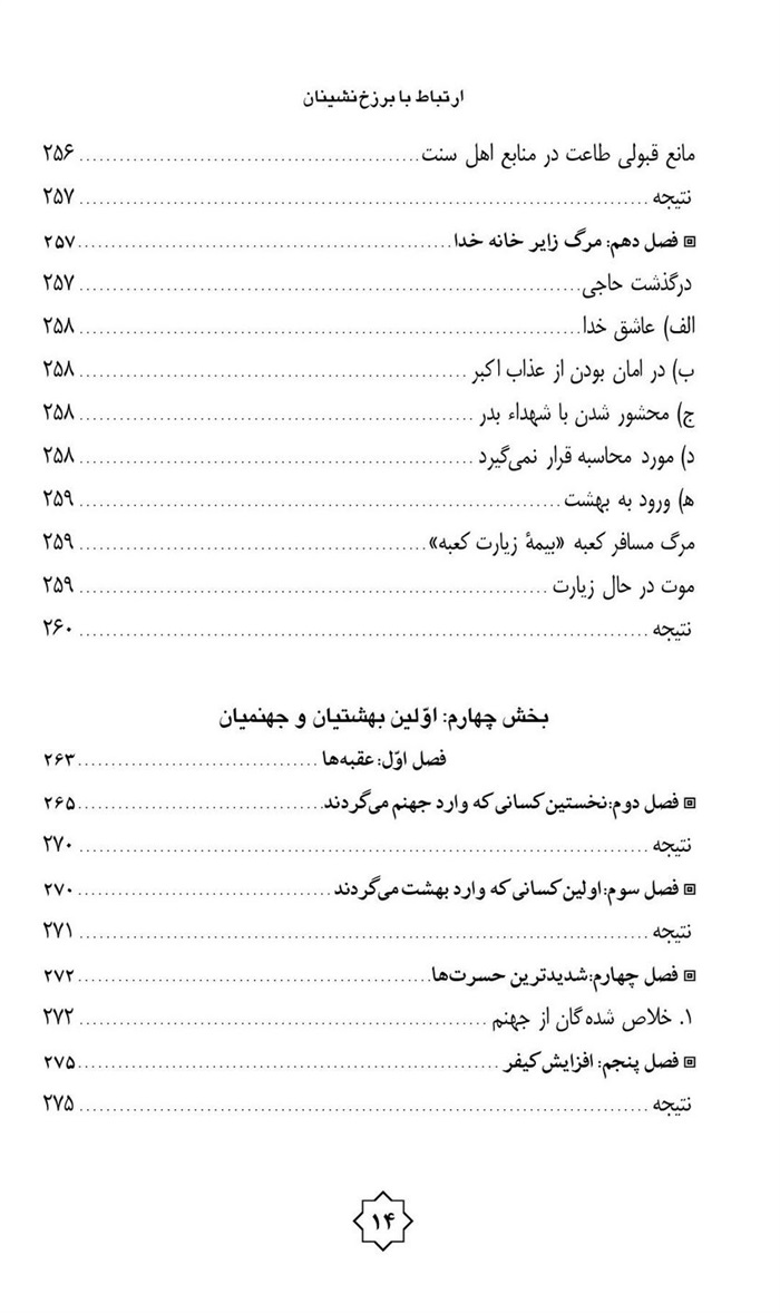 در این کتاب، جلوه های مختلف ارتباط با برزخ نشینان را ملاحظه می فرمایید.