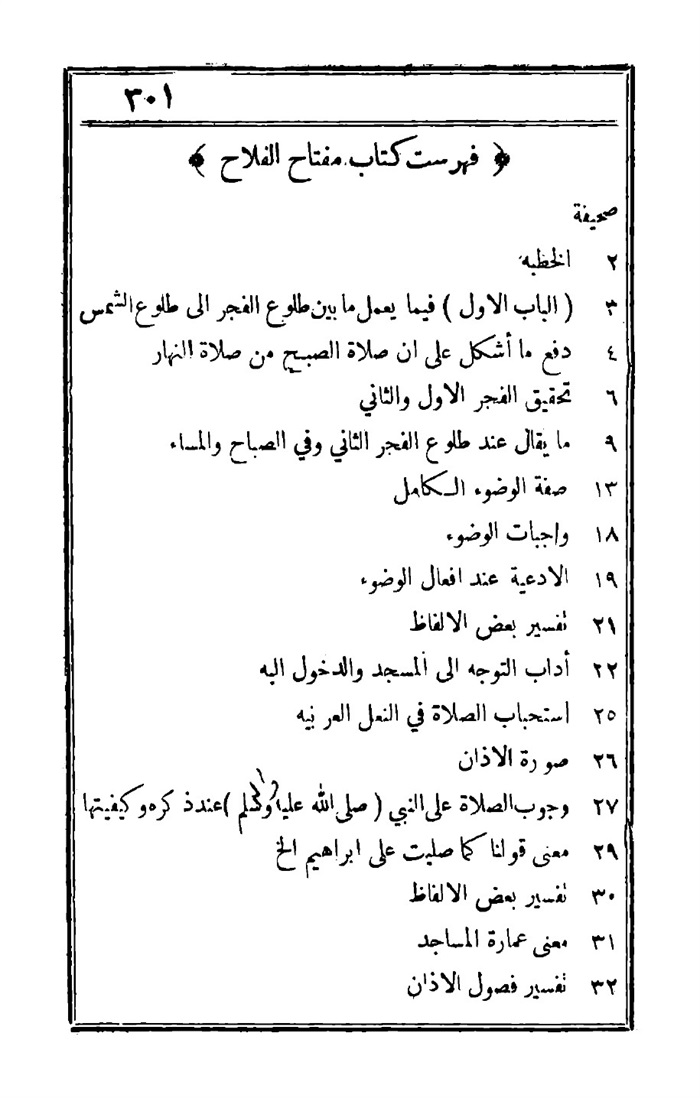الحمد لله الذي دلنا على جادة النجاة وهدانا إلى ما يوجب علو الدرجات والصلاة على أشرف البريات وأفضل أهل الأرض والسماوات محمد وآله الذين بموالاتهم تقبل الصلوات وببركاتهم تستجاب الدعوات (وبعد) فإن أقل العباد عملا وأكثرهم زللا محمد المشتهر ببهاء الدين العاملي وفقه الله للعمل في يومه ولغده قبل أن يخرج الأمر من يده (يقول) قد التمس مني جماعة من أخوان الدين وخلان اليقين تأليف مختصر يحتوي على ما لا بد لأهل الديانة من الإتيان به في كل يوم وليلة من واجب العبادات ومندوبها ومحمود الآداب ومرغوبها مقتصرا في الأعمال المسنونة على ما هو قليل المؤنة كثير المعونة فأجبت مسؤلهم وحققت بتوفيق الله مأمولهم وسميته (بمفتاح الفلاح) سائلا من الله سبحانه أن ينفع به الطالبين وأن يجعله من أحسن