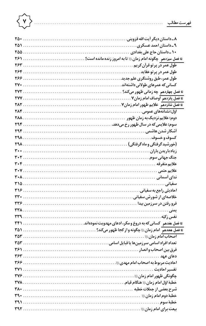 در خاتمه می گویم، در خلال نوشتن این کتاب به صدها حدیث مربوط به امام زمان علیه السلام - که در کتب حدیث بیان شده اند - دست یافتم؛ ولی از آوردن آنها صرف نظر کردم؛ نه اینکه درصحتشان شک داشتم؛ بلکه ضرورتی در آوردنشان ندیدم و بعضی از آنها با احادیث صحیحی که سند قوی ای دارند، منافات داشتند و قبول و تحمل بعضی از آنها برای عده ای از مردم سخت بود و معنای آنها معلوم نمی شد، مگر بعد از آوردن مقدمات طولانی و ... پس بهتر دیدم آن احادیث را بیان نکنم و آنها را به کسانی که کتاب های مفصلی در این مجال می نویسند، بسپارم.