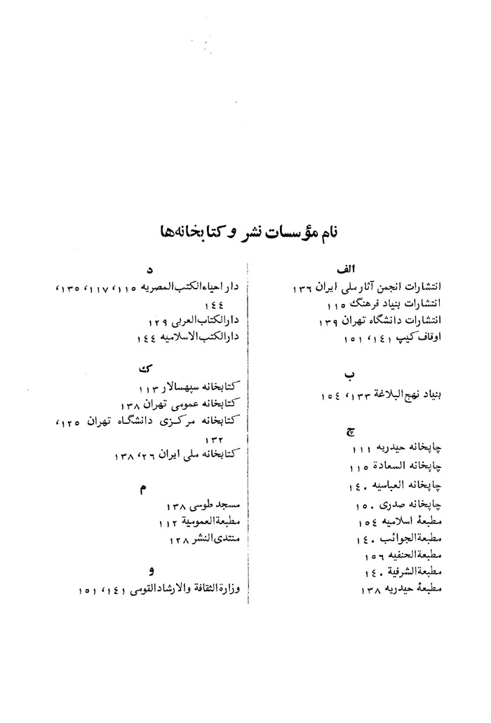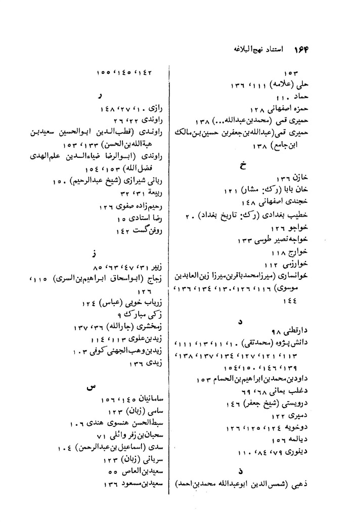 ز: نام راویان و ناقلان سخنان امام (ع) و ناگفته نماند چنانچه از مطالب این کتاب بر می آید مؤلف محترم توفیق دسترسی و مراجعه مستقیم بر بعضی از منابع را نداشته است و لذا آنها را بواسطه نقل کرده است.