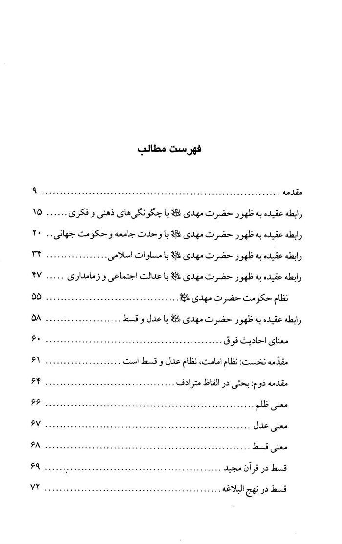 به ياري خدا در اين رساله به اين پرسش پاسخ مي دهيم و رابطه ايمان و عقيده به ظهور مهدي عليه السلام را با كيفيات ذهني و فكري، با وحدت جامعه و حكومت جهاني، با مساوات اسلامي، با عدالت اجتماعي و زمامداري و با عدل و قسط، بررسي مي كنيم، تا معلوم شود كه اين اعتقاد، در زندگي و مواقف حساس آن و در مبارزات و مجاهدات و تعيين جهت حركت جامعه، چه نقش بزرگ و سازنده اي را ايفا مي نمايد.