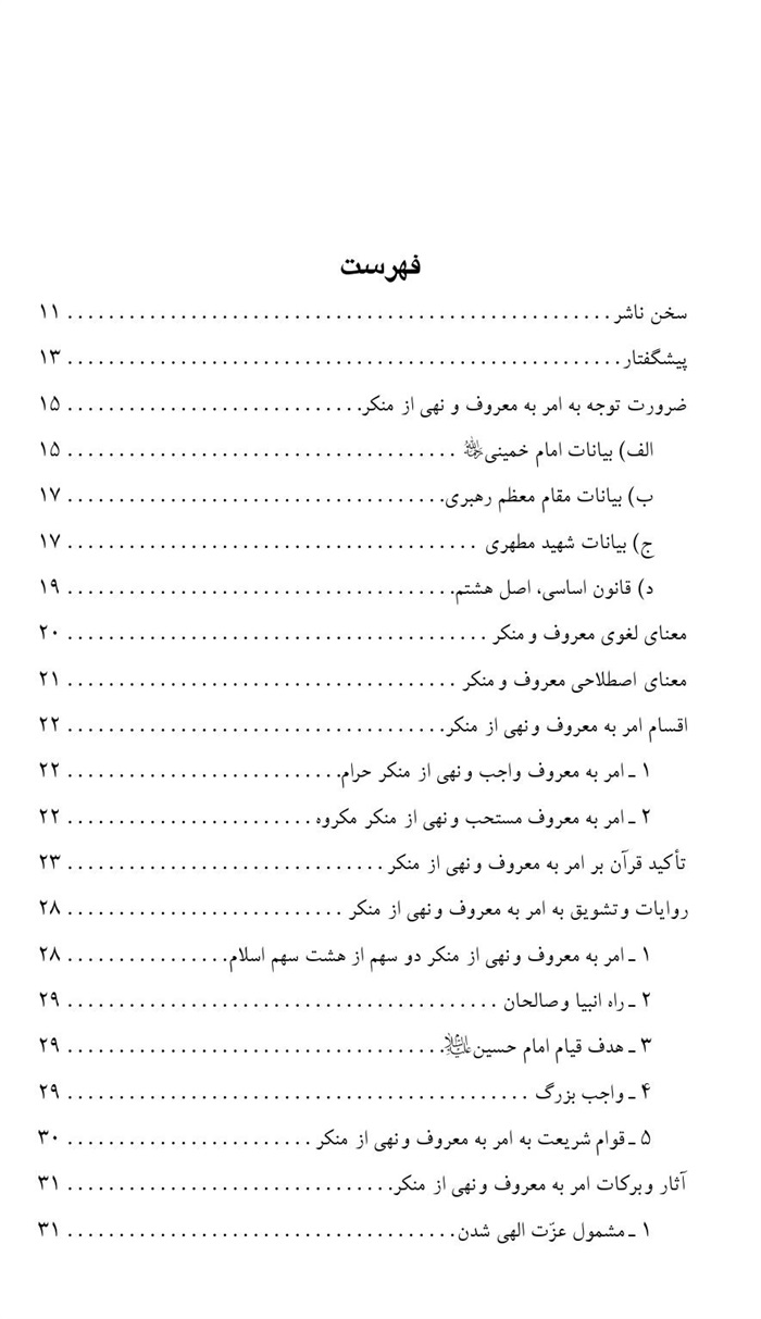 در عصر انقلاب اسلامی و حاکمیت اسلام بر کشور جمهوری ایران و استقبال چشمگیر اقشار مختلف جهان به سوی اسلام ناب محمّدی صلی الله علیه وآله و الگوگیری از نظام مقدّس جمهوری اسلامی به عنوان الگویی راستین و سالم برای حکومت در جهان کنونی و با تأکید در کتاب اللَّه، قرآن کریم، سنت پیامبر اسلام صلی الله علیه وآله، اهل بیت علیهم السلام و اصل هشتم قانون اساسی(1) که برگرفته از قرآن و سنت است و بر اجرای امر به معروف و نهی از منکر تأکید نموده است و تأیید حضرت امام خمینی رحمه الله، بنیانگذار جمهور اسلامی ایران و مقام معظم رهبری دامت برکاته و اعلی مقامه و مراجع شیعه، لذا کتاب مذکور را به زیور طبع آراستیم، از مؤلف محترم، استاد حاج علی اصغر رضوانی و عزیزانی که ما را در چاپ این اثر کمک و مساعدت نموده اند بویژه تولیت محترم مسجد مقدس جمکران، حضرت آیة اللَّه وافی کمال تشکر و امتنان را داریم. امید است مورد رضایت حضرت حق واقع گردد. ان شاء اللَّه.