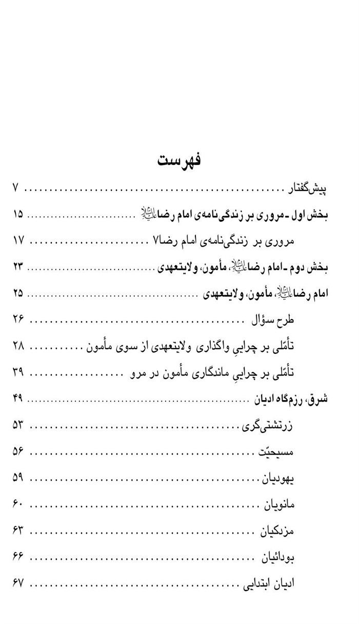 باری، از تاریخ می گفتم و دشواری هایش؛ که بنّایانِ نابلد، از مختصر مصالح سالمِ آن، دیواری کژ فراز آورده اند؛ و عاقل کسی است که تن از پناه این دیوار به بیرون اندازد،...، پس، در این نوشتار، کوششی رفته تا از غلبه ی اخباری گری و نوحه گری پرهیز شود، و در عوض، با نگاهی تاریخ مدار و تحلیلی، ولایتعهدی امام علی بن موسی الرضاعلیهما السلام کاوش گردد.
