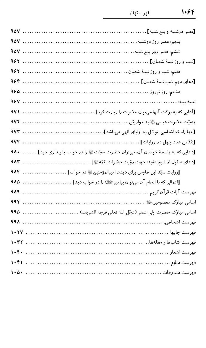 و ادعیه و نماز و اوراد برای این قسم حاجت بسیار است. ما بیشتر آنها را استقصا نمودیم در فصل اول از مجلّد ثانی از کتاب دارالسلام که در آن است، آن چه نفوس قدسیّه به آن میل کند و دیده ها را روشن نماید.
