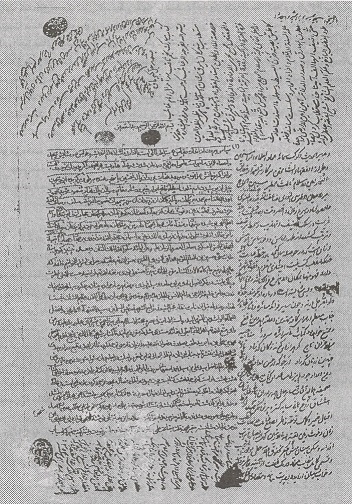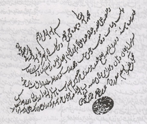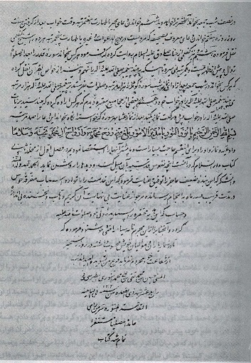 سواد دست خط مبارک جناب مستطاب ظهیر الملّة والدین حجّة الاسلام و رئیس المسلمین آیةاللَّه بزرگ شیرازی، مرحوم آقای حاجی میرزا محمّد حسن - رضوان اللَّه علیه -.