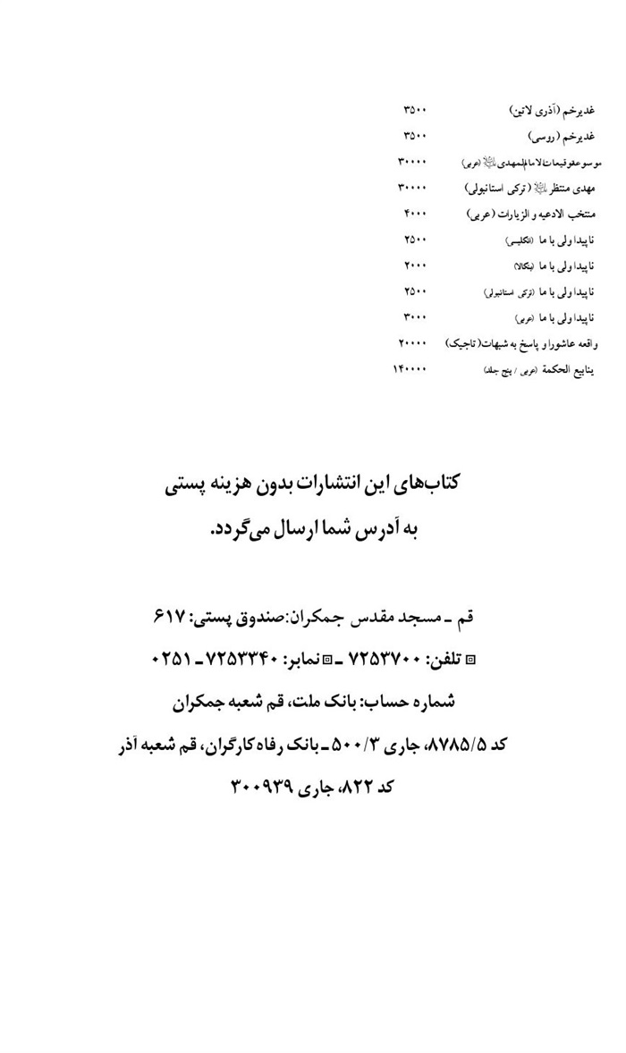 مرکز پخش: انتشارات مسجد مقدّس جمکران