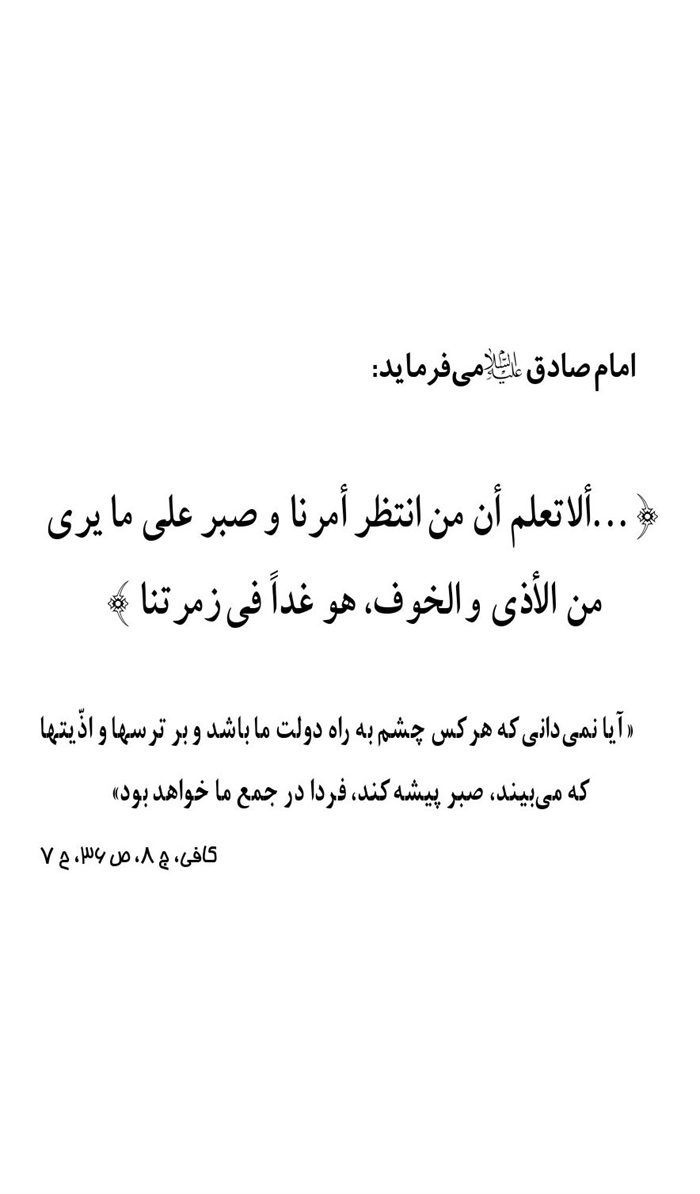 (...ألاتعلم أن من انتظر أمرنا و صبر علی ما یری من الأذی و الخوف، هو غدا فی زمرتنا)