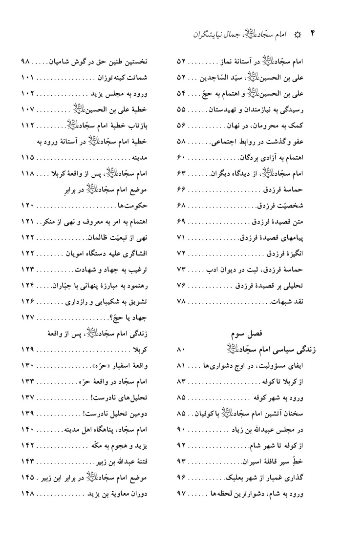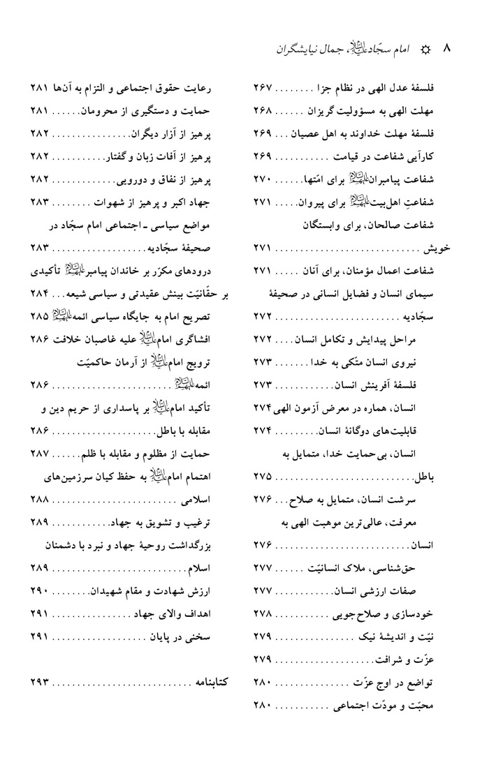 تقدیم به امام نیایشگران، اسوه صبر و پایداری، که در بحرانی ترین شرایط سیاسی حاکم بر جهان اسلام، پیام معرفت و اخلاق و ایمان را با امواج لطیف نیایش درآمیخت و جان های خسته از ظلم امویان را به تابش دوباره خورشید حقّ و عدالت نوید داد.