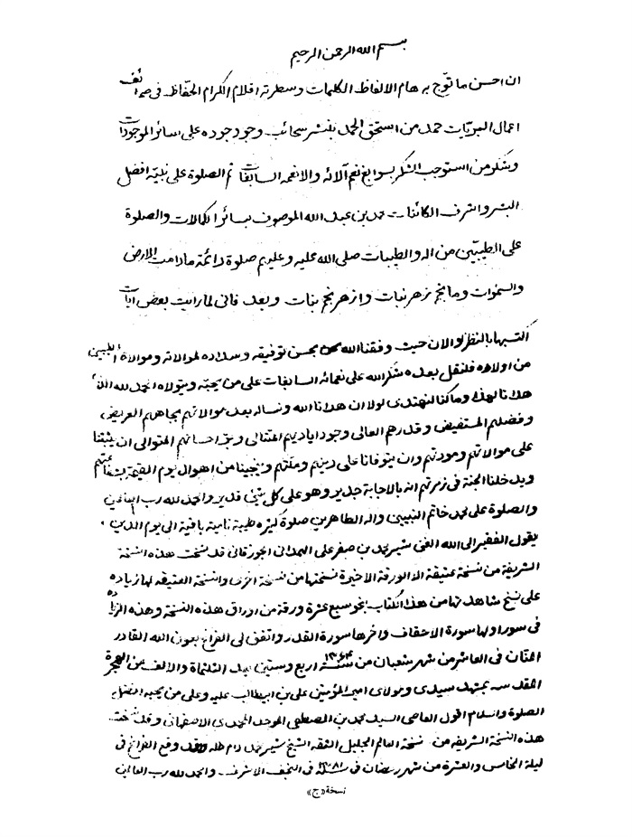 واعلم أن هذا نهاية ما وفقنا الله سبحانه بجميل صنعه لتأليفه وجمعه، وهذا الّذي عثرنا عليه، وسهل الله سبحانه لنا الوصول إليه، وهو قليل من كثير ونزر من غزير، لان فضلهم مما نطق به الكتاب الكريم ونبأ به النبيّ عليه وعلى آله الصلاة والتسليم فمن أجل ذلك أنه لا يحصى كثرة ولا يعلمه إلا الله العظيم