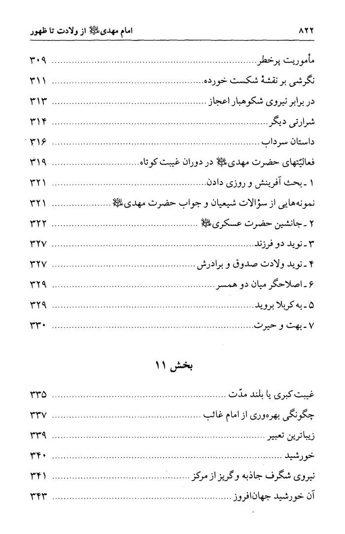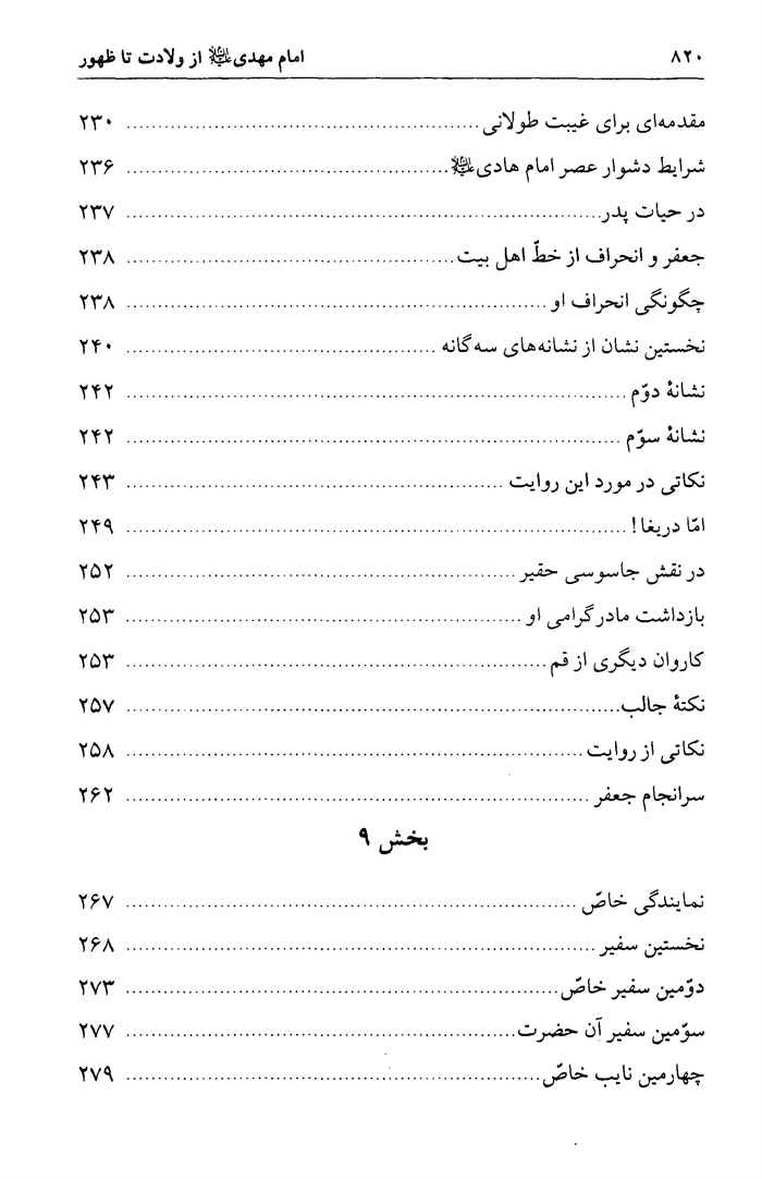 دوران پیش از ولادت امام مهدی (علیه السلام) وپس از آن ودورانی را که زیر سایه ی بلند پایه ی پدر گرانقدرش حضرت عسکری (علیه السلام) گذشت. ودوران غیبت کبری و