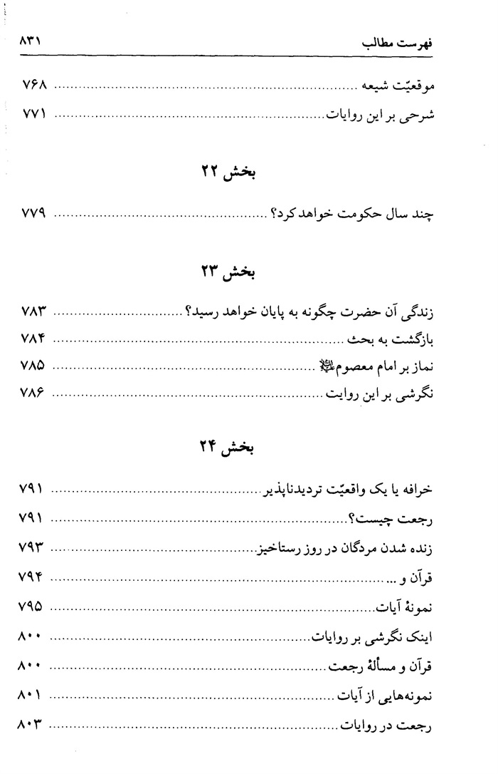 به هر حال بحث از رجعت، یک بحث طولانی است وبرخی از علمای ما در مورد آن کتابهای مستقلی نوشته اند که ما برای رعایت اسلوب کتاب، فشرده ای از آن را گزارش کردیم.