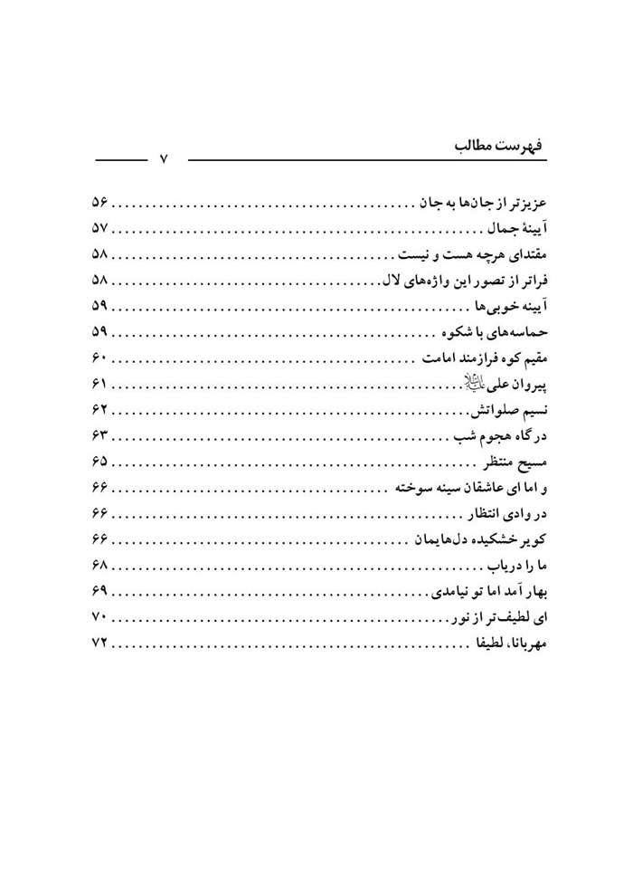 ماه را ببین که مبهوت روی تو مانده و خورشید را که چگونه هر صبح به عشق دیدارت سر بر می آورد. سبزه زار بهشت که رستن گاه هرچه زیباییست به گلبرگ طاووسی مهدی علیه السلام زیباست، چه شیرین است نام تو، ای عزیز! چشم هایی که به راه تو ماند. سالهایی را به اشک می گذرانند تا پاکیزه ترین و شفاف
