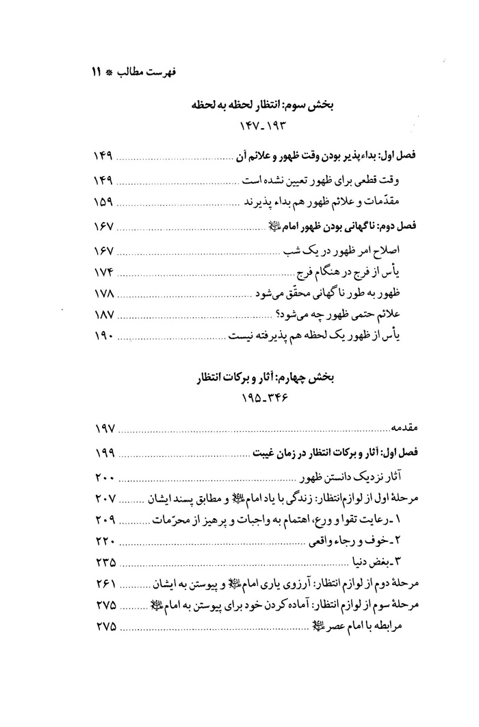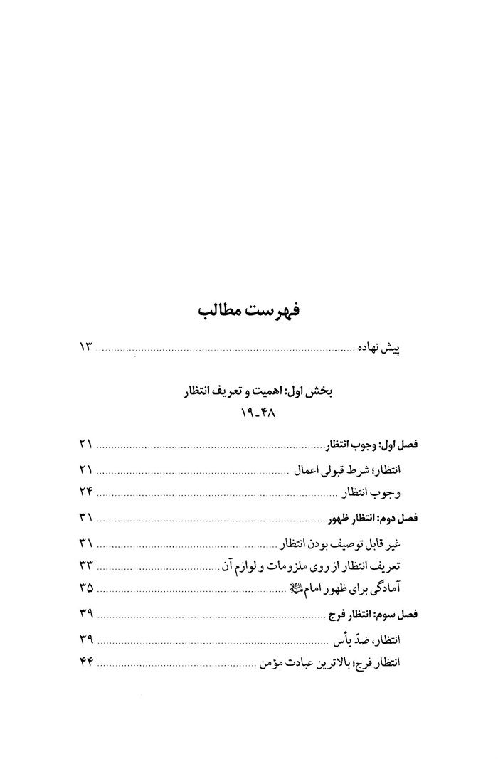در بخش نخست به اهمیت انتظار و جایگاه آن در دین اشاره شده است و سپس با توجه به وجدانی بودن حال انتظار از سه جهت به