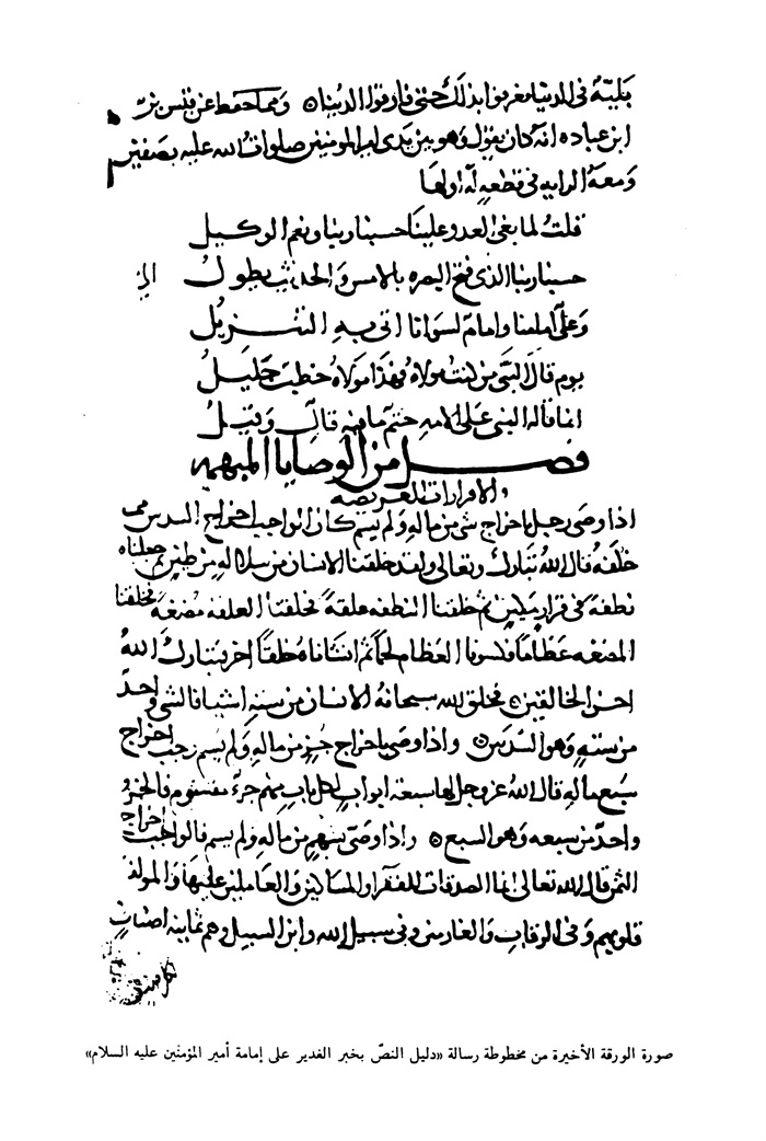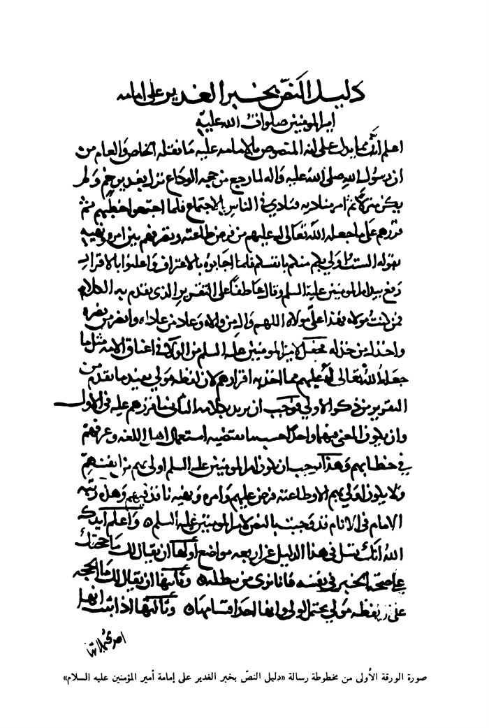 وكانت هذه الرسالة قد نشرت على صفحات مجلة تراثنا في عددها الحادي والعشرين، من سنتها الخامسة ( شوال / 1410 ه-) بتحقيق المحقق الفاضل الاستاذ علاء آل جعفر ، والصادر بمناسبة مرور (1400) عام على واقعة غدير خم المباركة. واستمراراً مع خطة المؤسسة باستلال جملة الرسائل المنشورة على صفحات مجلة تراثنا فقد بادرنا الى تقديم هذه الرسالة مستقلة بين يدي القارئ الكريم.