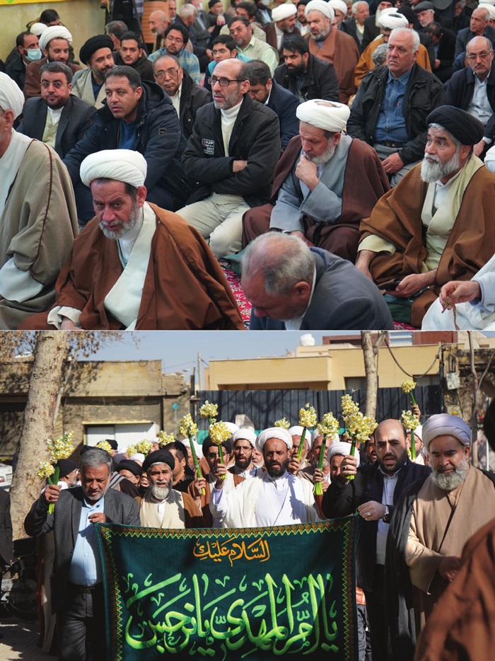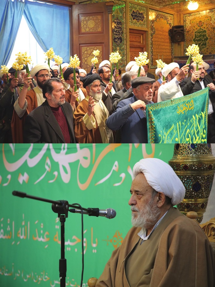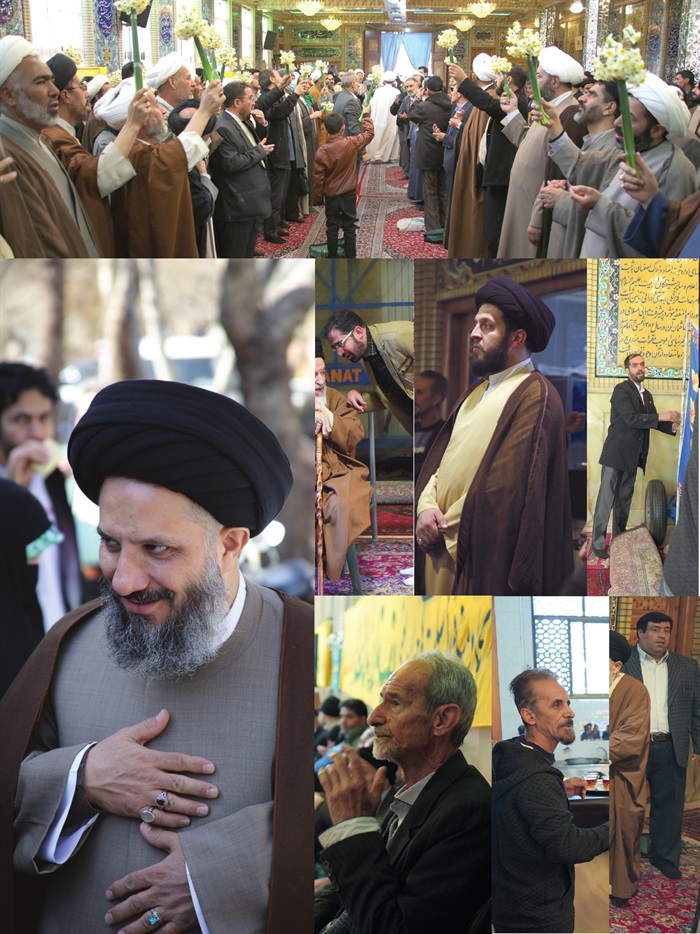ثمّ إنّ دخول قافلة الاحتفال والسرور، فیما کان یحمل أفرادها باقات أزهار النرجس وبمشاركة كبیرة من قبل العلماء وفضلاء الحوزة العلمیة، زاد من أجواء البهجة، مع مشاركة الشعراء والمدّاحین الموالین وقراءة مقطوعات التوسّل بمولاتنا السیّدة نرجس(سلام الله علیها)، ممّا دفع بالمزید من المؤمنین إلی المشاركة المكثفة في إحیاء هذه المراسم الطیبة، وقد كان للاُستاذ الكبیر والخطیب المفوّه، سماحة حجّة الإسلام والمسلمین الشیخ حسین أنصاریان، دور كبیر وممیز في إثارة أحاسیس الجموع