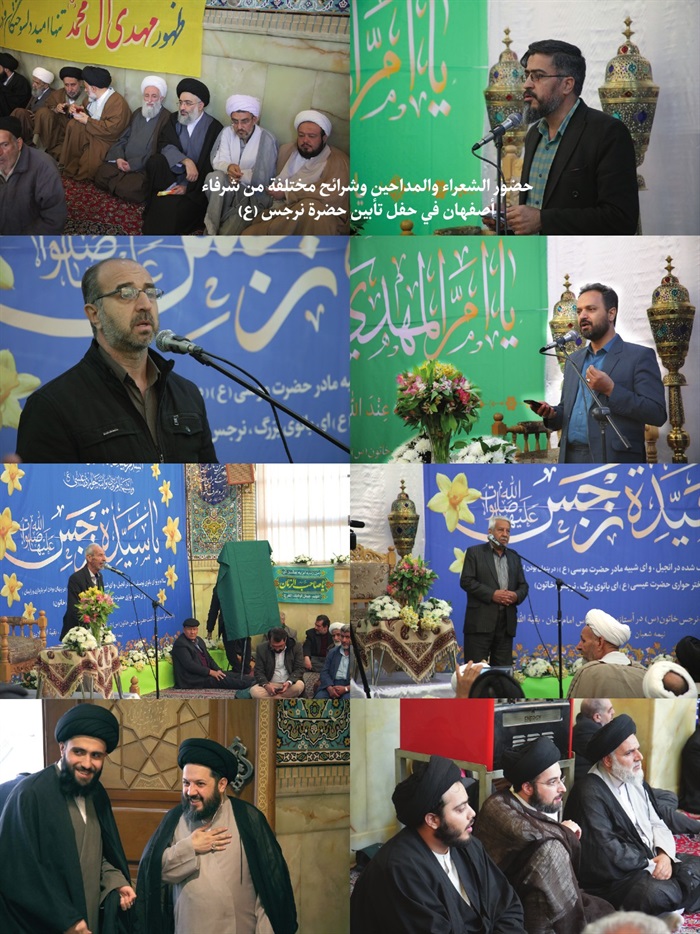 وعُقدت اللقائات مع العلماء وشخصیّات الحوزة العلمیة بقم المقدّسة، وكذا أقیمت مجالس المبلّغین والشعراء في مدینة قم، وشكلت مجالس كثیرة مهیبة بحضور ومشاركة العلماء والناشطین في مجال التبلیغ، وكذا الشعراء المرموقین في مدینه مشهد المقدّسة، واُطلقت الدعوات الأدبیّة للنساء والشعراء في مختلف أرجاء البلاد للحضور في حرم السیّد جعفر بن الرضا(علیهما السلام) في مدینة أصفهان، وكذا إقامة الاحتفالات الكبیرة والمتوسطة والموجزة في مساجد مدینة إصفهان وبعض بیوت المؤمنین الموالین وبعض المدن المجاورة الأخریٰ، وبالأخص المجلس العظیم الذي أقیم في حسینیة جواد الأئمة(علیه السلام) في ذكریٰ مولد إمام الزمان عجّل اللّٰه ظهوره المبارك (منتصف شعبان) في یوم الجمعة المصادف للعاشر في شهر شعبان المعظم سنة 1444 ق وبحضور العلماء والشعراء والجامعیین وشرائح المجتمع الأخریٰ، وتحت عنوان: مجلس إحیاء وتوسّل لتجلیل وتعظیم السیّدة نرجس(سلام الله علیها)؛ كسباً لرضا ولطف مولانا بقیّة اللّٰه الأعظم