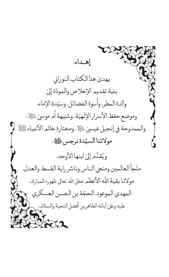 وصلّی اللّٰه علیٰ مولانا الحجّة القائم وعلیٰ آبائه الطاهرین وجدّته الزهراء البتول واُمّه الصدّیقة نرجس العظیمة.