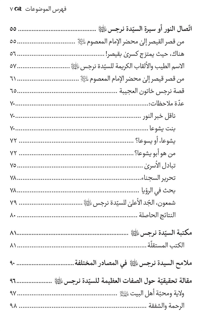 هي حوالي 85 قصیدة من الشعر التقلیدي والحدیث، أبدع فیها ناظموها في تصویر البعد الشخصي والعقائدي والمنازل والمقامات الخاصّة بالسیّدة الزهراء(سلام الله علیها) والسیّدة نرجس(سلام الله علیها) ومولانا الإمام الموعود المنتظر (عج الله تعالی فرجه الشریف) ، ووظائف المؤمنین والإنسانیة جمعاء في عصر الغیبة ووجوب بذل كلّ الجهود للتمهید للظهور المهدوي الشریف، ومن ذلك إعداد العدّة اللازمة لیكون المؤمن متّصفاً بصفات الجندي المستعد علی الدوام لنصرة مولاه الإمام الحجّة(علیه السلام) وفي جمیع الأحوال حتیٰ تكون الغیبة عنده بمنزلة الظهور، وسواء تقدّم هذا الأمر أم تأخّر.