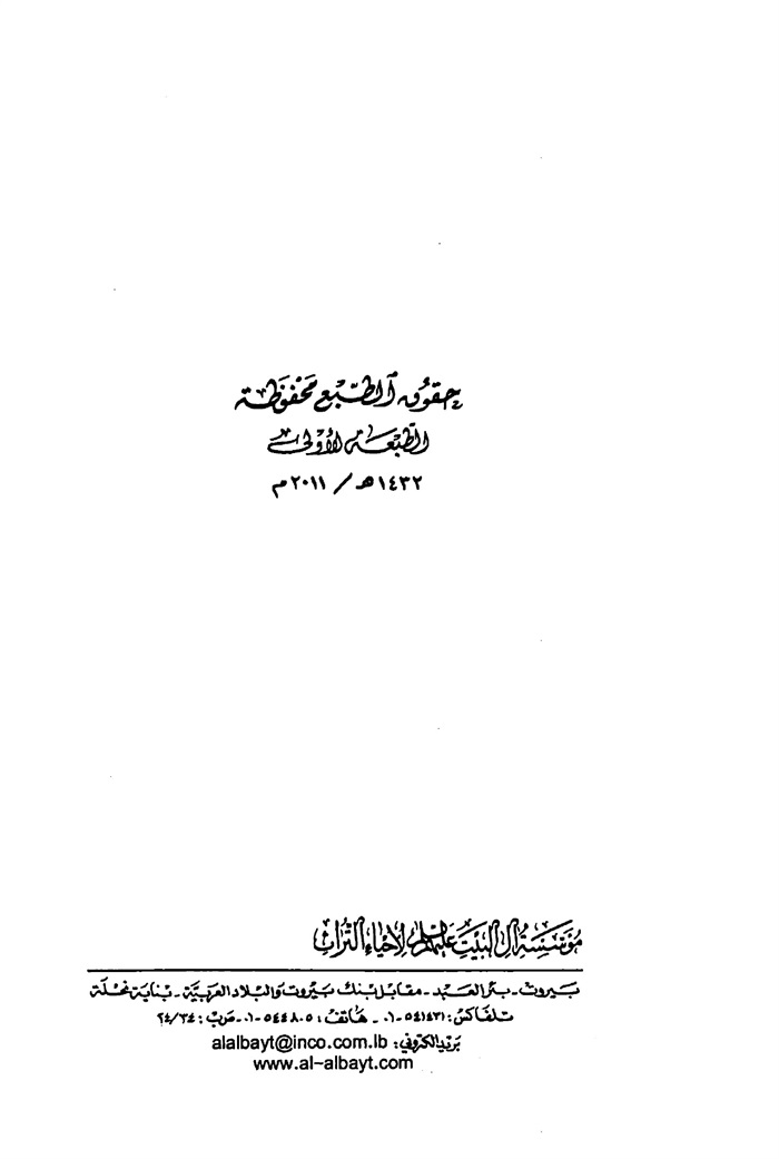 الناشر [بیروت]: موسسة آل البیت علیهم السلام لاحیاء التراث، 1432ق.