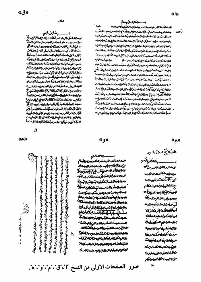 صور الصفحات الاولی من النسخ "ا"،"ق"،م"و"ه".
