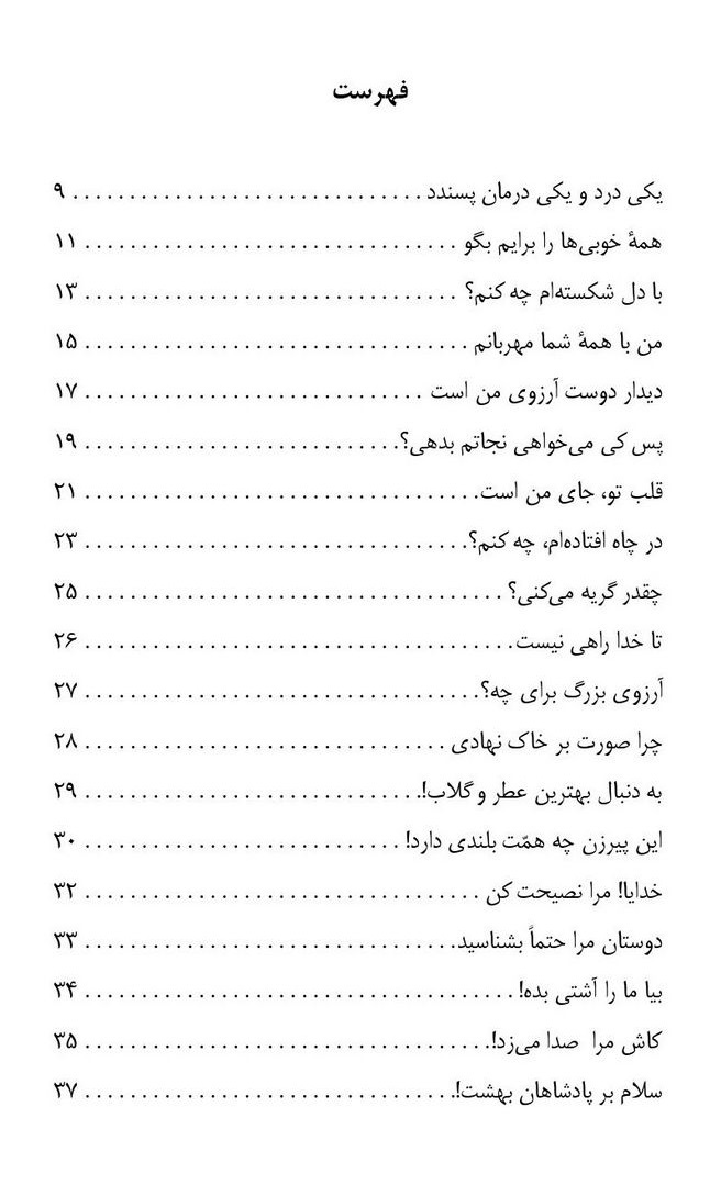 اکنون که بر من منّت نهاده ای و توفیق نوشتن این کتاب را به من دادی، چشمم به لطف و مهربانی توست. اگر لطف دیگری کنی ممنون تو هستم، من آرزو دارم که این کتاب بتواند جوانان را قدری با مهربانی تو آشناتر کند.