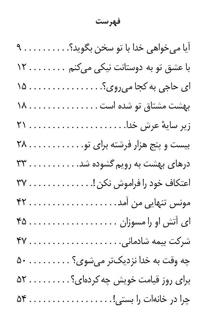امّا از شما چه پنهان من تا به حال ندیده و نشنیده ام که چون بنده ای نماز بخواند خود خدا با او سخن بگوید و به او وعده بهشت بدهد.