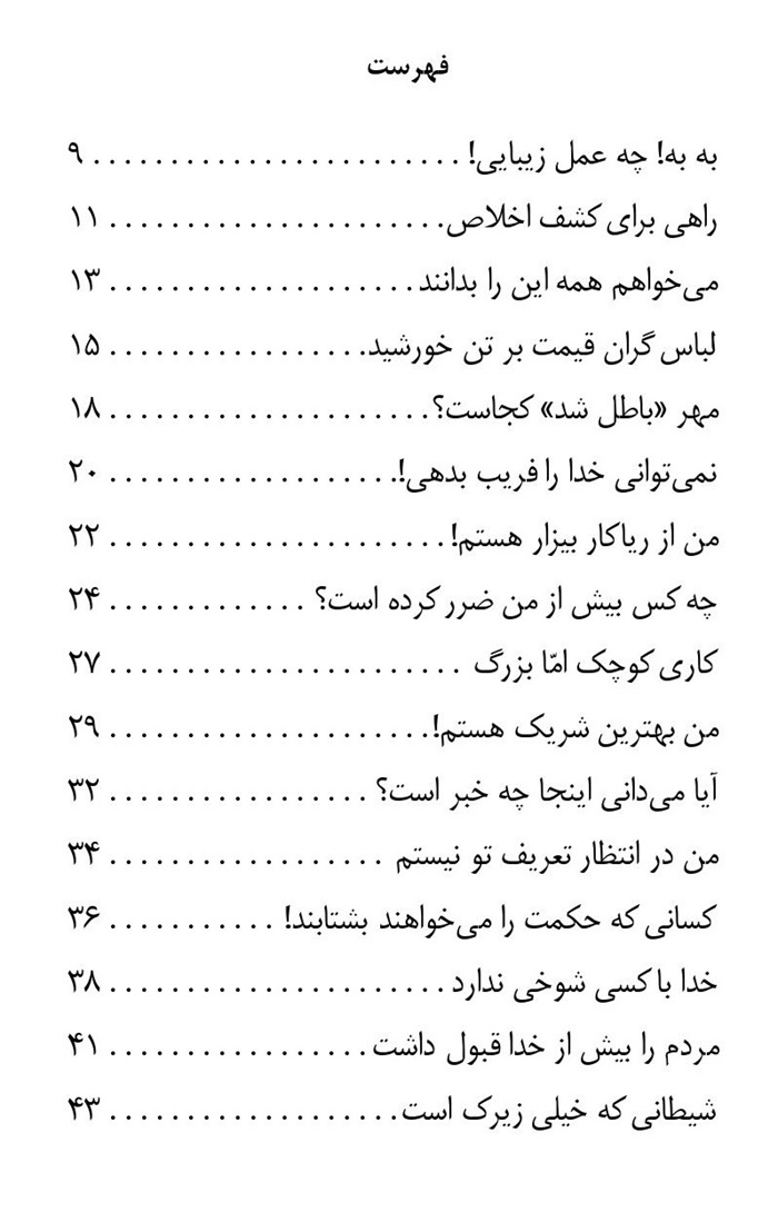 این کتاب به شما کمک می کند تا با ضررهای ریا و خودنمایی بیشتر آشنا شوید و شما را با آثار و برکت های اخلاص بیشتر آشنا می کند.