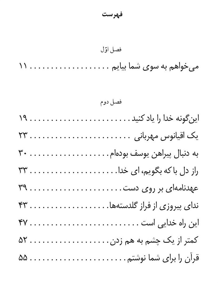 چرا خجالت بکشم؟ چرا؟ می دانم که شما بسی مهربان هستید و دلسوز. می دانم که مرا دوست دارید، شما به همه دوستان خود نظر دارید، آنها را می بینید و برایشان دعا می کنید. شاید این اثر دعای شما باشد که من امشب تصمیم گرفته ام به سوی شما بازگردم.