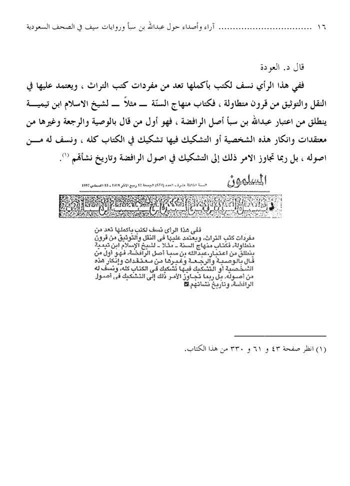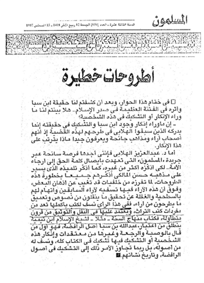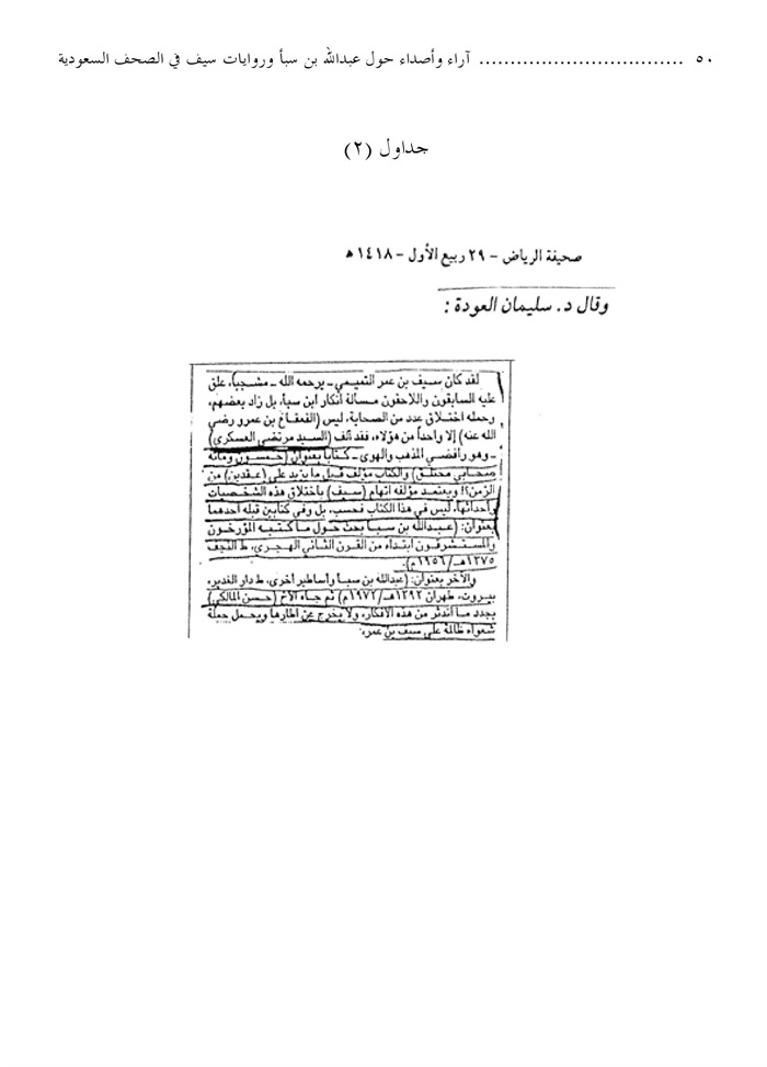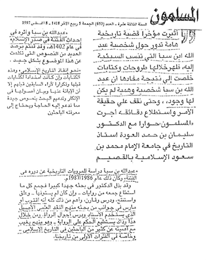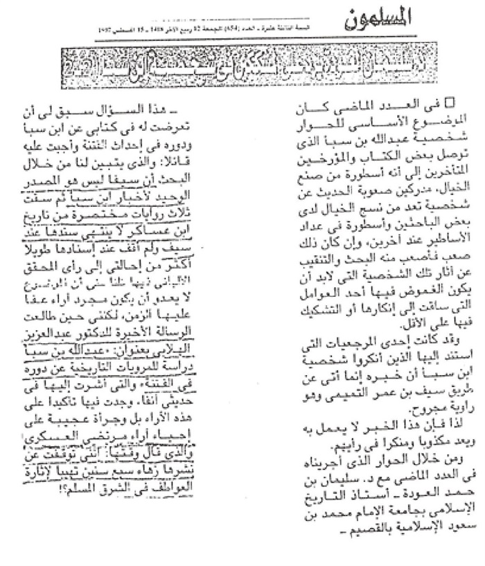 آراء و اصداء حول عبدالله بن سبأ و روایات سیف فی الصحف السعودیه