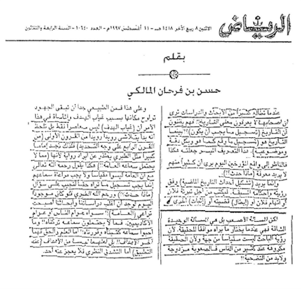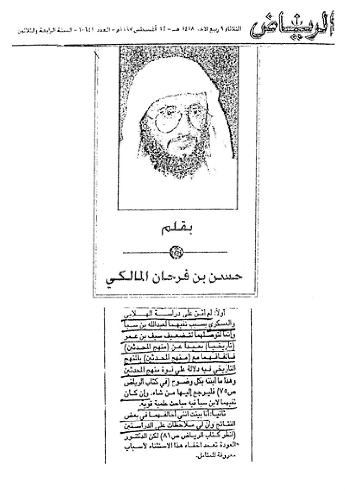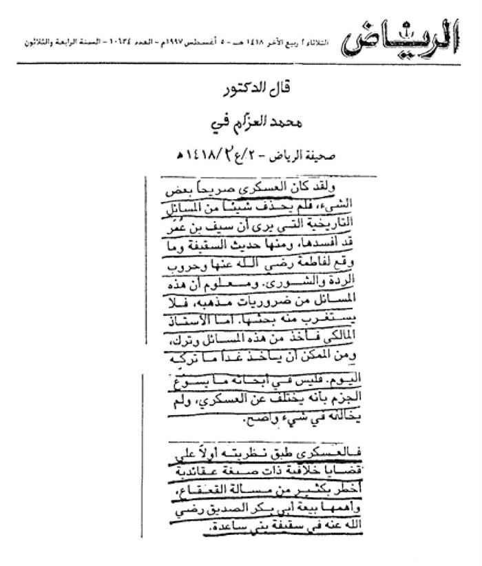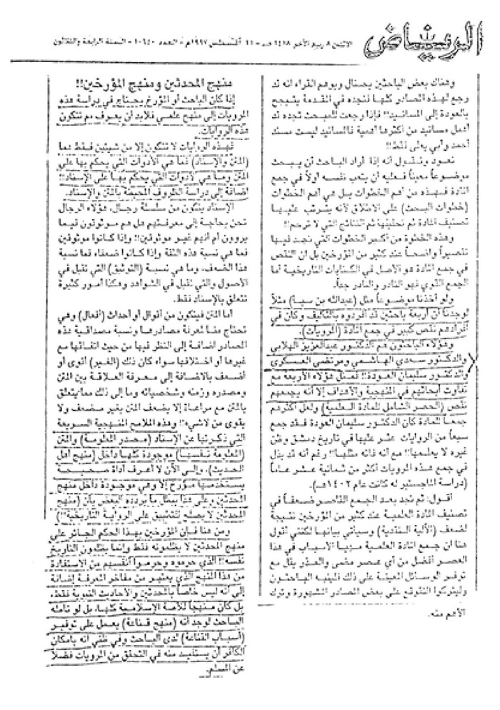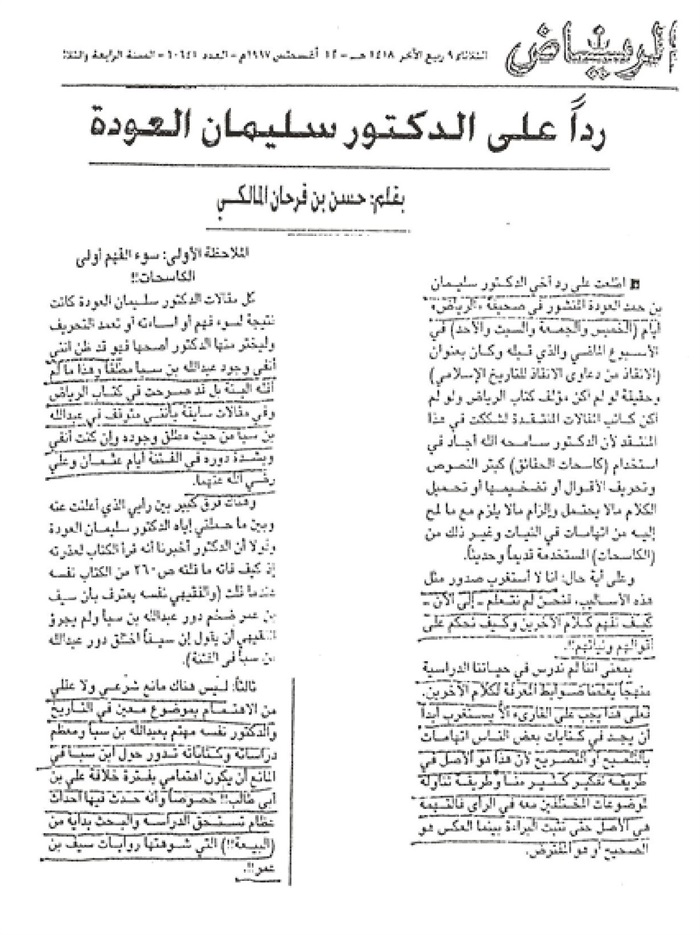 الدکتور العوده : فی صحیفتی الریاض والمسلمون