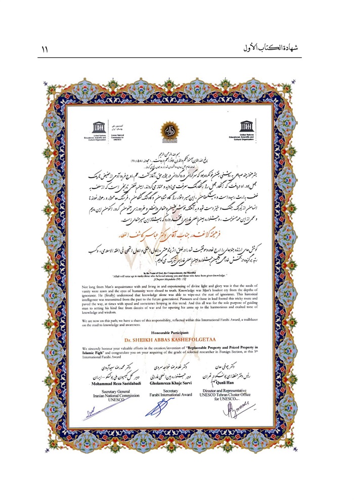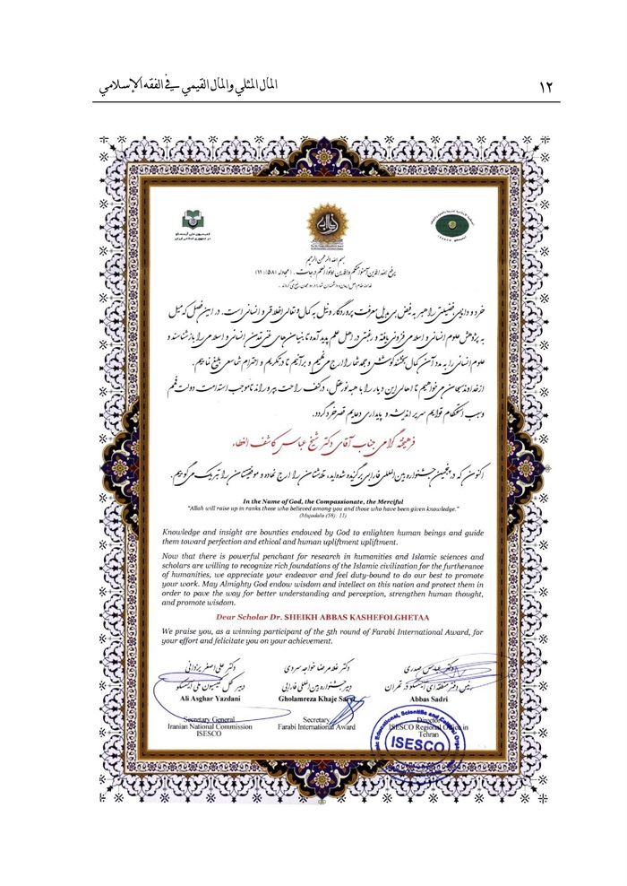This issue has been studied based on reliable sources in the introduction and two parts of the book. The introduction is on property and its kinds, the first part, divided into four chapters, is on the origin of the theories of replaceable property and priced property, and The second part, divided into six chapters, is on the rules related to replaceable property and priced property.