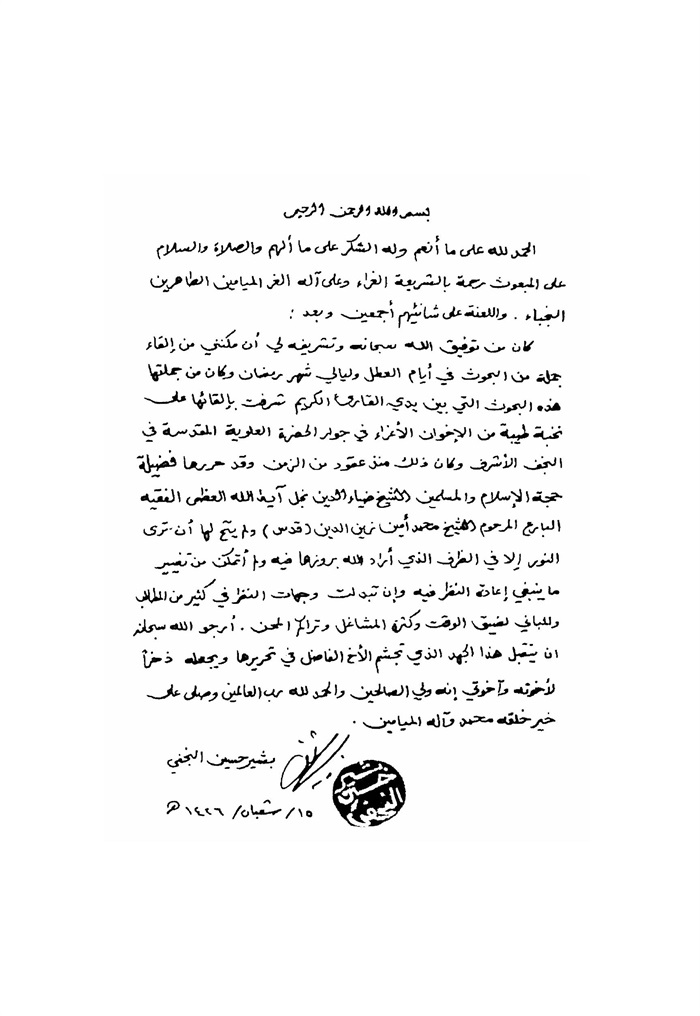 قد وافانی التوفیق الإلهی لاستفادة هذه الأبحاث الفقهیة التی تتکفل ببیان مسائل تهم أهل العصر مع جماعة من الأخوة الأفاضل، وکان ذلک فی لیالی شهر رمضان المبارک سنة 1402 إلی سنة 1404 للهجرة النبویة المبارکة تحت ظل الحضرة العلویة المقدسة وقاها الله وإیانا صروف الدهر وریب الزمان، ولعل الله تعالی ینفع بها بعض الأخوة فتکون ذخراً لی یوم لا ینفع مال ولا بنون آملاً من الله تعالی جزیل ما هو أهله من