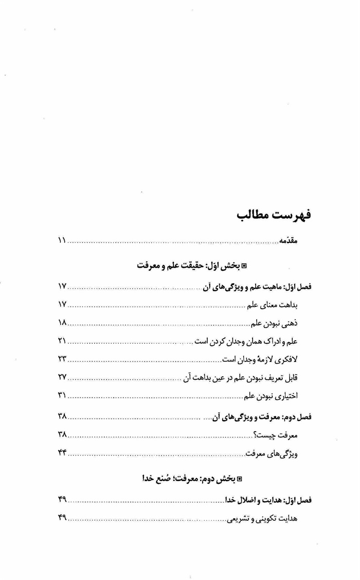 در این کتاب ابتدا تذکّراتی درباره ماهیت علم و معرفت مطرح شده که به راحتی برای هر عاقلی قابل وجدان است. سپس بر همین منوال ویژگی های معرفت را به طور کلّی بیان کرده ایم که مهم ترین آنها الهی و قدسی بودن آن است. در توضیح این بخش - که عمده ترین قسمت کتاب است - از بحث هدایت در قرآن و احادیث استفاده زیادی برده ایم و سعی کرده ایم که به طور دقیق صُنع خدای متعال در قلمرو هدایت انسان ها را با دلیل عقلی و نقلی تبیین کنیم. در مطالعه این قسمت باید توجه داشت که بیان جایگاه و نقش اراده پروردگار در امر هدایت بشر به قلمرو اختیار او لطمه ای وارد نمی سازد و آن را تنگ نمی کند. آنچه در این مبحث با ارشاد و هدایت ادله نقلی برای انسان وجدانی می شود، شناخت محدوده واقعی اختیار است که چه بسا به خاطر عدم تنبه به واقعیت امر مورد غفلت قرار گرفته باشد. بنابراین هرجا سخن از صنع خدا در هدایت بشر به میان آمده به موازات آن نقش اختیار او هم در آن مورد، بررسی شده است تا با تفکیک محدوده صنع پروردگار از قلمرو اختیار انسان، شبهه جبر برای خواننده مطرح نگردد.