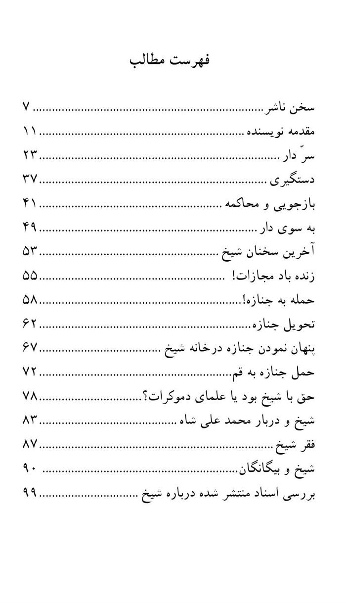تصمیم به انتشار کتابی که در دست دارید، در پاسخ به چنین ضرورتی، اتخاذ شده است. این کتاب به هیچ وجه حاوی یک تحلیل همه جانبه و وافی از مشروطه و حتی ماجرای بر سر دار رفتن شیخ شهید نیست، اما قرب زمانی حیات نویسنده آقای تندرکیا (شمس الدین) نوه پسری شیخ فضل الله فرزند آقا جلال کیا با مشروطه و دسترسی او به بستگان درجه اول و شاهدان عینی حادثه، ویژگی ممتازی بدان داده است که با دو