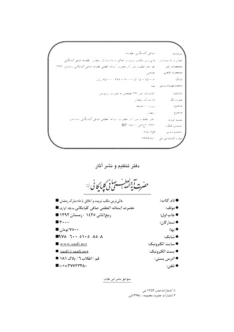 عنوان و نام پدیدآور : عالی ترین مکتب تربیت و اخلاق یا ماه مبارک رمضان/لطف الله صافی گلپایگانی.