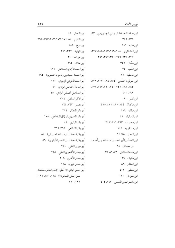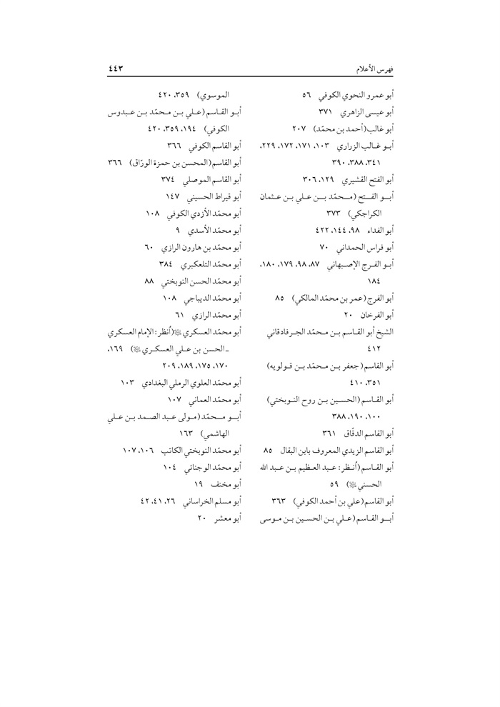 306 - هدية الأحباب في ذكر المعروفين بالكنى والألقاب والأنساب / الشيخ عبّاس القمّي (ت / 1359 ه ) ، ترجمه إلى العربية الشيخ هاشم الصالحي، تحقيق ونشر مؤسّسة نشر الفقاهة ، ط1 ، مؤسّسة النشر الإسلامي ، قم / 1420 ه .