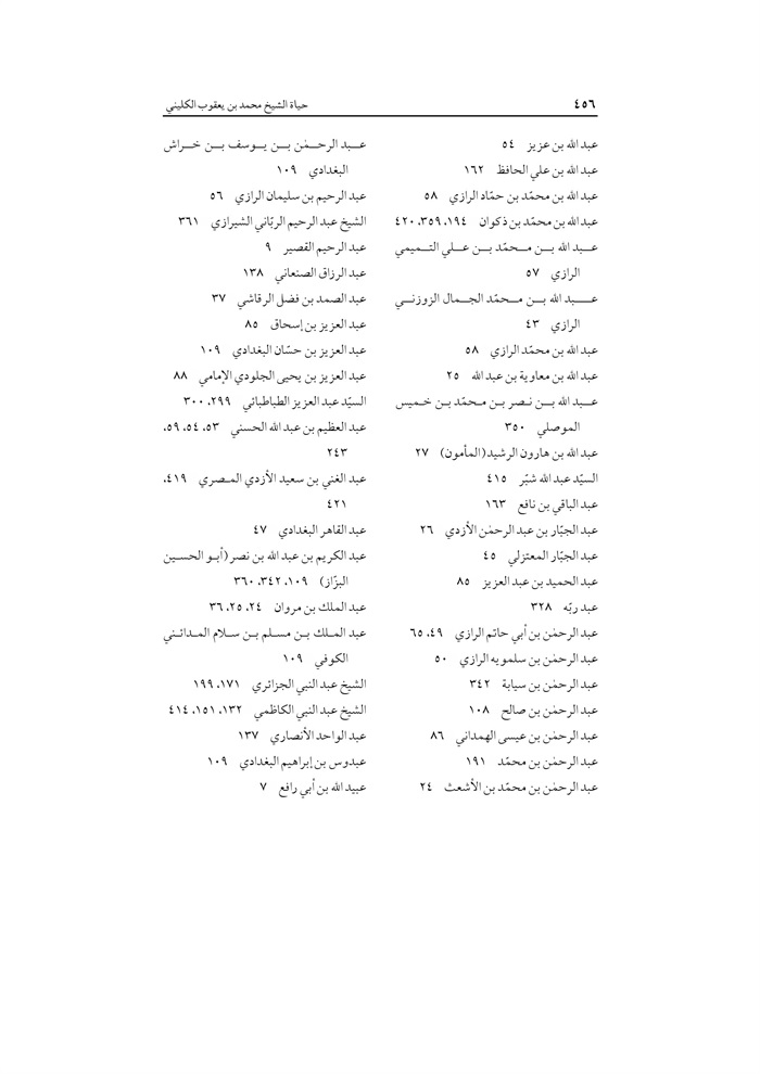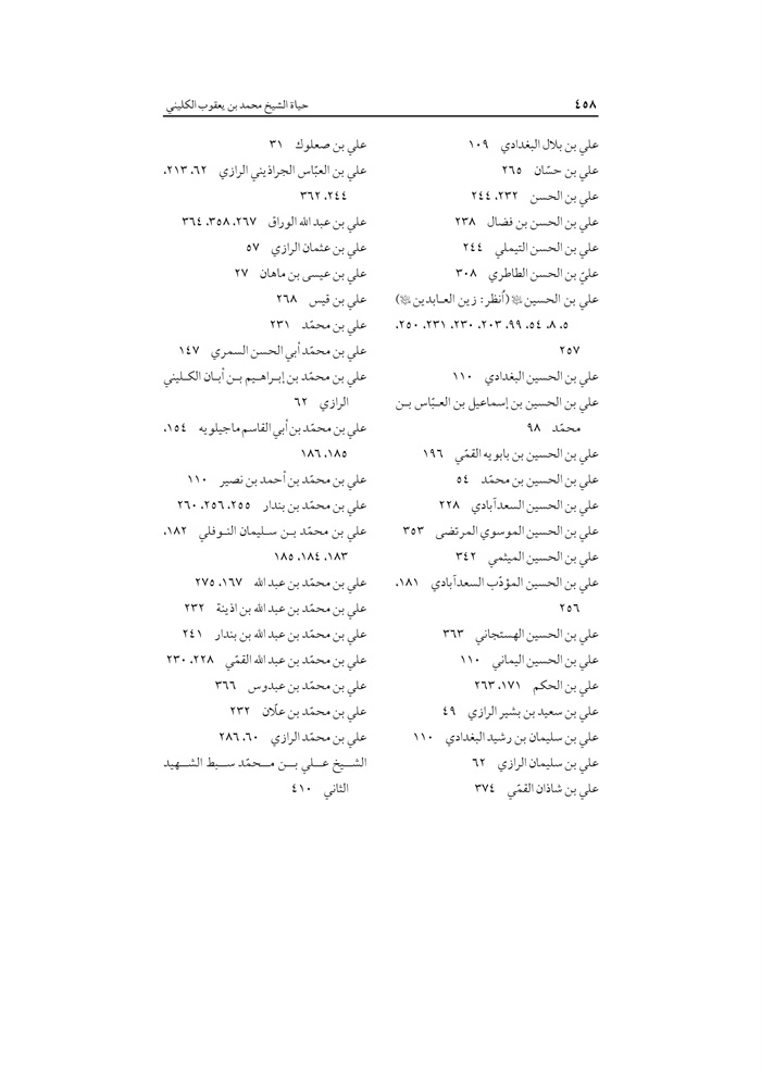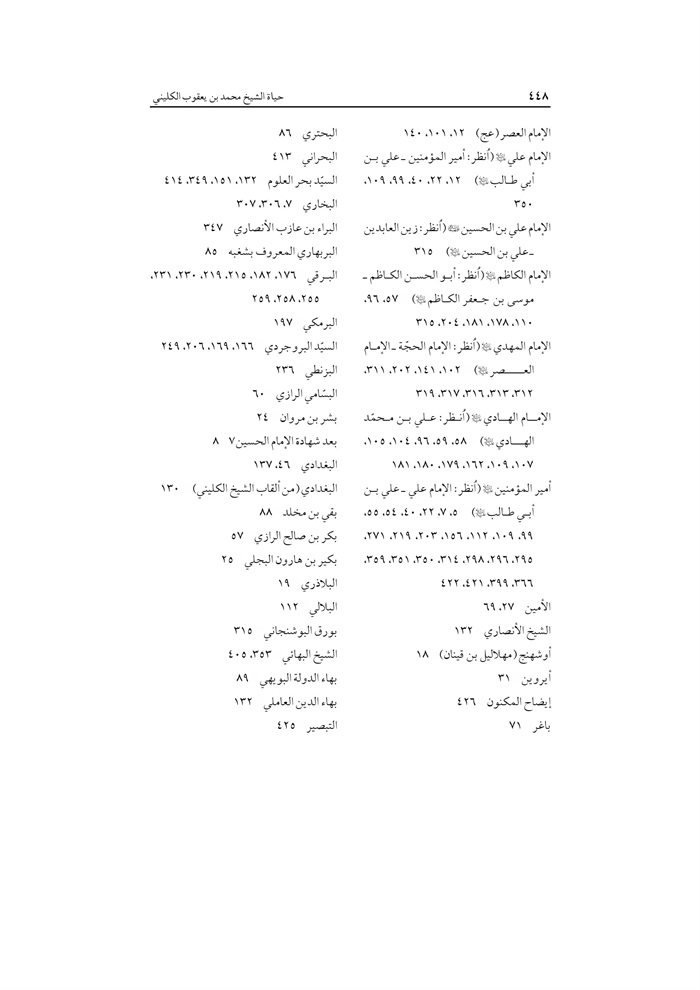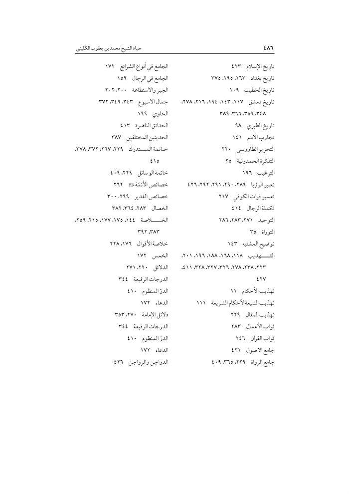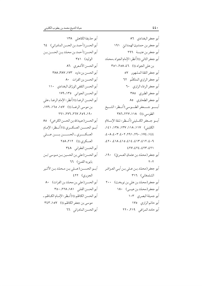 عمیدی ، السيد ثامر هاشم ، حياة الشيخ محمد بن يعقوب الكليني / السيد ثامر هاشم العميدي الحسيني . -قم : دار الحديث ، ١٤٢٩ ق = ١٣٨٧ ش . ٥٣٢ ص . - ( مركز بحوث دار الحديث ؛ 178) . (مجموعة آثار المؤتمر الدولي لذكرى الشيخ ثقة الإسلام الكليني ؛ ٢٩).