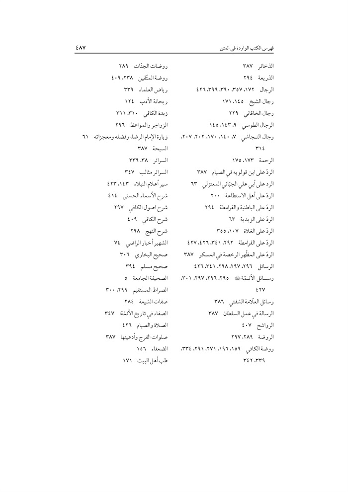 282 - مقابس الأنوار / الشيخ أسد اللّه الدزفولي الكاظمي (ت / 1237 ه )، نشر مؤسّسة آل البيت عليهم السلام ، قم (أوفسيت على الطبعة الحجرية) .