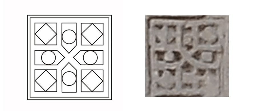 مهرهای گچی که در فاصله بین آجرها ساخته شده در ایوان شمالی نسبت به ایوان های دیگر متفاوت است. در این ایوان شکل منتحه از ترکیب گچبری این مهرها عمدتاً یک مربع است در حالی که در بقیه بنا و در موارد دیگر شکل آن ها به صورت مستطیل است که ضلع بزرگ آن به حالت عمودی است.
