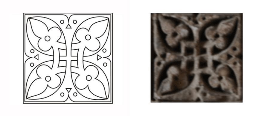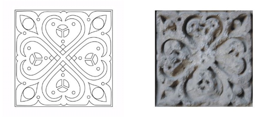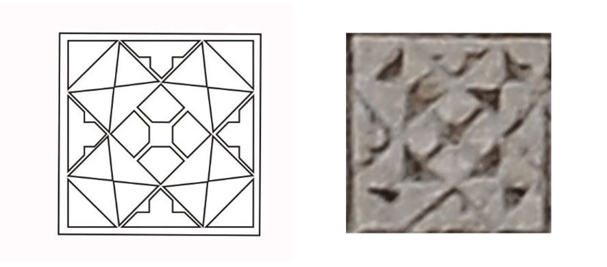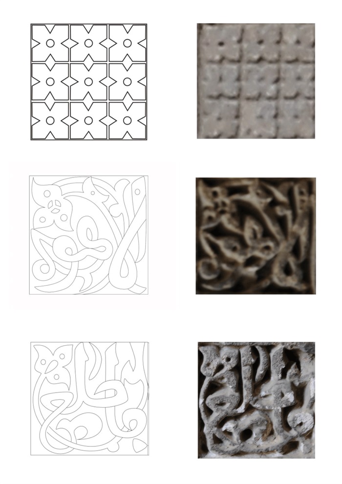 به نظر می رسد نقوش در دورۀ سلجوقی ساده تر و کم عمق تر هستند، اما پس از آن در دورۀ ایلخانی بر پیچیدگی نقش ها افزوده شده و عمق نقش ها تا حدی بیشتر شده است. علاوه بر این که کثرت به کارگیری آن ها نیز افزایش یافته است