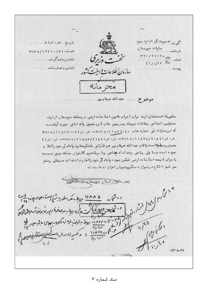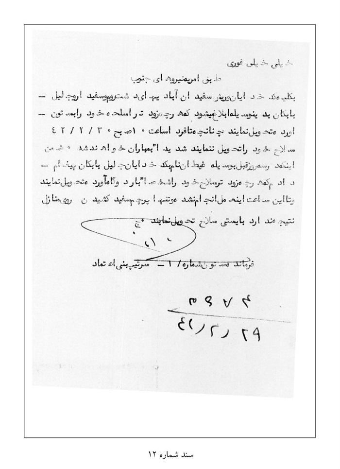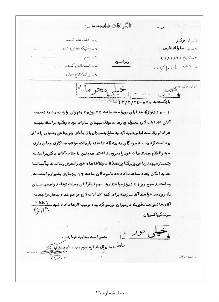 از تطبیق آن با روایات و واقعیت ها، بهره برداری بهینه نماید. نگارنده در تألیف کتاب حاضر، انبوهی از اسناد و مدارک محرمانه و سری حکومتی را مطالعه و ملاحظه نموده؛ و با در نظر گرفتن شرایط صحیح استفاده از آن، بهره برداری نموده است. دهها هزار برگ از این اسناد، در بایگانی اسناد محرمانه و سری ساواک، نگهداری می شده است. تقریباً، تمام شخصیت هایی که در وقایع سال های 43-1341 به نحوی از انحا با «غائله جنوب» مرتبط بوده اند، پرونده انفرادی یا جمعی داشته اند و این اسناد در تبیین واقعیت ها و حقایق کمک بزرگی به محقق نموده است. این اسناد خام، البته بایستی با دقت و احتیاط تام، ملاحظه و استفاده گردد.